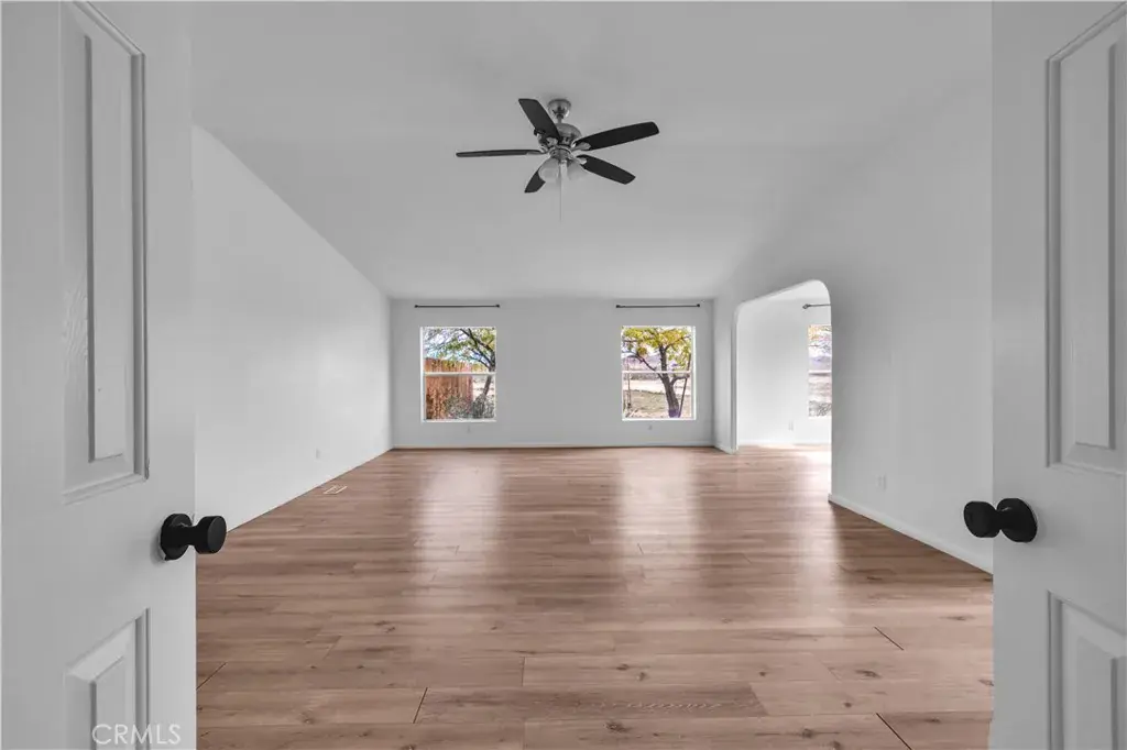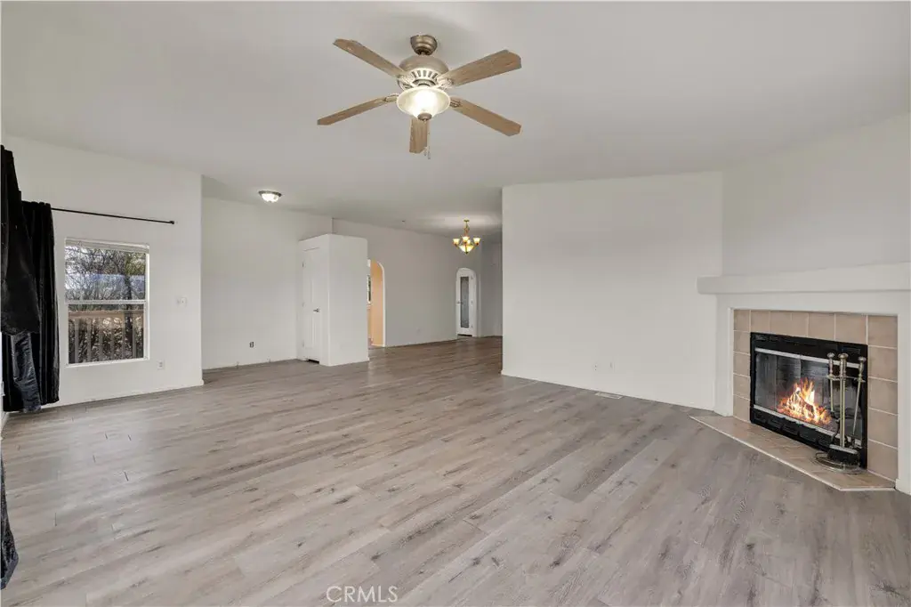 Spacious 3-bedroom, 2-bath home on 5 flat, usable acres, offering over 2,200 square feet of living space and a highly functional floor plan. As you arrive, you’ll immediately notice the variety of mature trees and palm trees that have been thoughtfully planted throughout the property, along with true 360-degree panoramic views in every direction. Step inside and enjoy the light, bright, and airy feel of the home. The very large living room features a wood-burning fireplace, vaulted ceilings, and multiple windows that perfectly frame the surrounding views. The oversized dining room easily accommodates a large table and gatherings and flows seamlessly into the spacious kitchen, which offers abundant cabinet and counter space along with a pantry. Just off the kitchen is an exceptionally large breakfast nook, comparable in size to many full dining rooms. This space includes a sliding glass door to an east-facing patio, enclosed with privacy fencing, making it the perfect spot to enjoy morning coffee while watching the sunrise. All three bedrooms are generously sized, with the primary suite standing out as a true retreat. The primary bedroom is exceptionally large and features two full walk-in closets plus an additional office or flex room, ideal for a home office, nursery, library, or creative space. The ensuite bathroom includes dual sinks, a walk-in shower, and a separate soaking tub. The guest bathroom is conveniently located and features a shower/tub combo. Additional features include an indoor laundry room with access to the backyard. Outside, you’ll find a large pergola and deck overlooking stunning views of the snow-capped San Jacinto Mountains, creating an ideal setting for outdoor entertaining or quiet relaxation. This property offers incredible value with its size, acreage, views, and close proximity to pavement, making access easy without long dirt road travel. A rare opportunity to own a large home on five acres with space, views, and versatility.