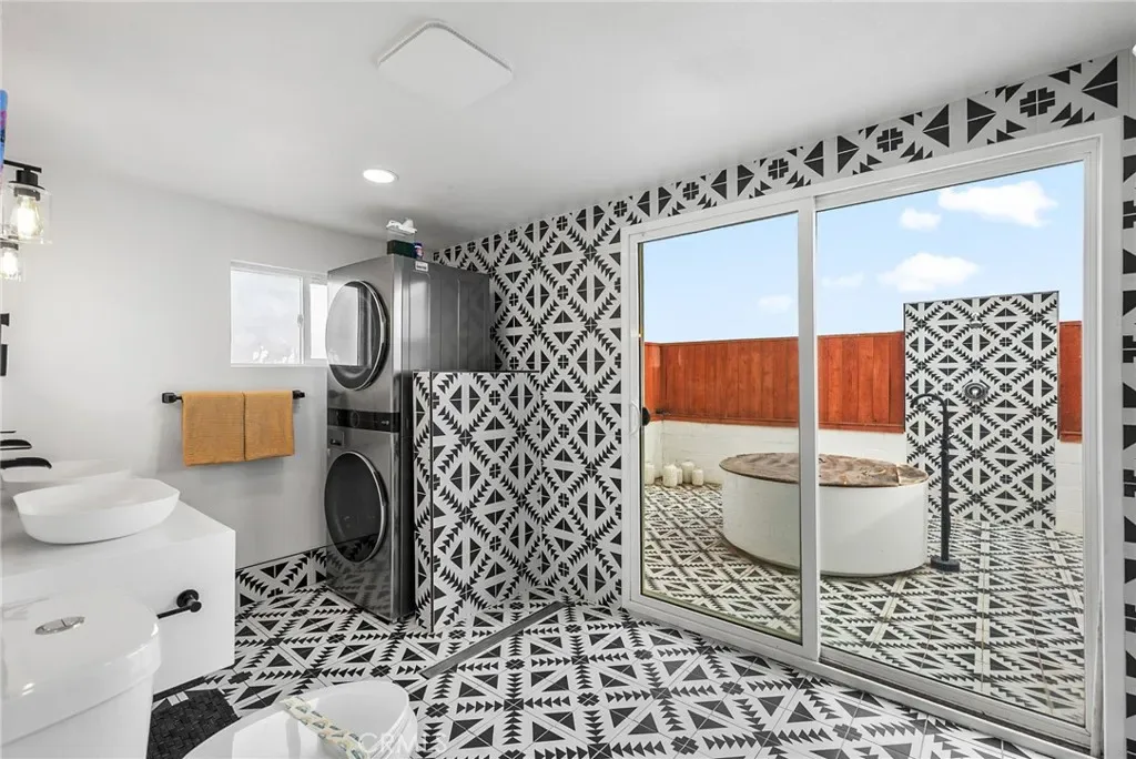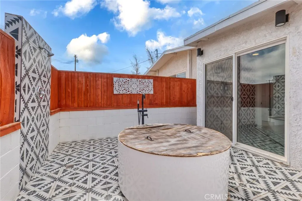 Set on a spacious lot surrounded by iconic high-desert landscape, the home immediately draws you in with its inviting outdoor amenities. A sparkling in-ground pool serves as the centerpiece of the backyard oasis, offering the perfect escape during warm desert days. Adjacent to the pool, a beautifully maintained hot tub provides a soothing place to unwind after a day of exploring nearby Joshua Tree National Park. For those who appreciate unique outdoor living experiences, the property also features an outdoor shower and a charming open-air soaking tub, ideal for stargazing or enjoying tranquil desert mornings.