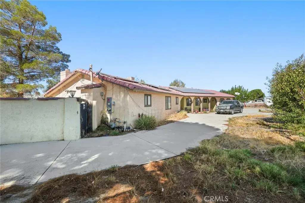 Welcome to this Ranch residence, a spacious & versatile property with incredible potential, located on a prime corner lot in Littlerock. This 4-bedroom, 3-bathroom home offers approximately 2,504 sq. ft. of living space on a expansive 27,435 sq. ft. lot. With a little imagination and vision, this property can truly be brought back to its full shine and glory. The home features an impressive addition that can serve as a 5th bedroom or a generous great room – perfect for entertainment, hosting gatherings, or creating a private retreat. Enjoy the outdoor lifestyle with a sparkling pool & spa, ideal for relaxing weekends and sunny California days. There are 2 leased solar systems, adding value and energy efficiency. A converted garage served as a guest house in the past (Please call for details). The semi-circular driveway provides ample parking with room for vehicles, recreational toys or farming equipment. With its large lot and versatile layout, the possibilities for customization and expansion are endless. This property is truly a diamond waiting to shine – bring your ideas and creativity to make it your dream home.