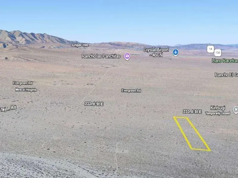 Discover the incredible opportunity of owning 10 spacious acres in Llano, Los Angeles County, CA! This property offers versatile A-2-2 Heavy Agricultural zoning, opening the door to a wide range of possibilities. With dirt road access and wide, open surroundings, you’ll enjoy a peaceful environment to create your ideal space. Located just 20 minutes from Crystalaire Country Club and 42 minutes from Victorville, you’ll have both leisure and city access within reach. Electricity in the area is off-grid, giving you the flexibility to design an energy solution that suits your needs. Secure this incredible 10-acre property today and make it yours!