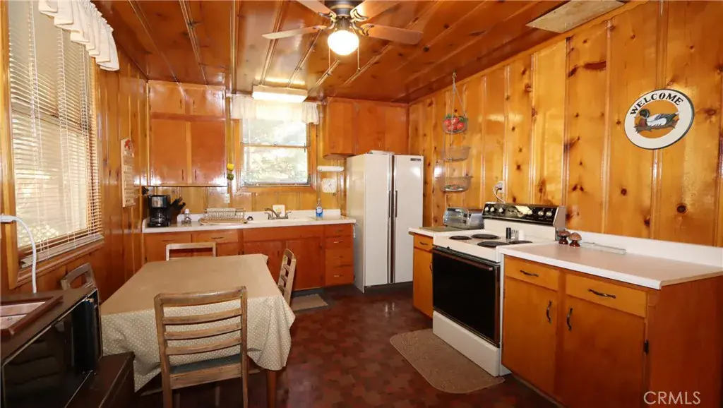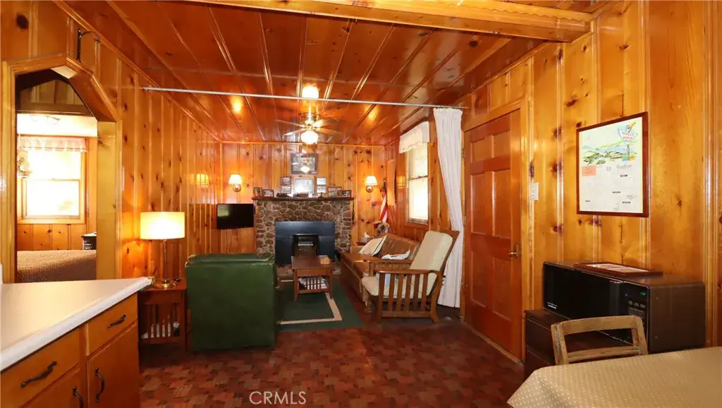 Step back in time with this classic two-bedroom, one-bath cabin in Loch Lomond’s beloved “Italian Village,” where vintage character meets relaxed mountain living. Custom built in the late ’40s, this home features durable craftsmanship, warm knotty pine interiors, and a traditional stone fireplace that anchors the cozy living area. Corner windows frame peaceful natural views, and the terraced stone backyard with pergola and built-in barbecue is perfect for year-round gatherings. The garage offers space for laundry, a workshop, and extra storage. Recent upgrades include new Hardie board siding for the entire building providing additional fire protection, fresh exterior paint, and a pellet stove for efficient heating. Within easy walking distance to the community pool, restaurant, store, and fire station, this cabin is also close to Boggs State Forest, Harbin Hot Springs, golf courses, wineries, hiking trails, and fishing spots—just over an hour from Santa Rosa. Ideal as a vacation home, retirement getaway, or income-producing property, this Loch Lomond retreat offers comfort, charm, and convenience in one inviting package!