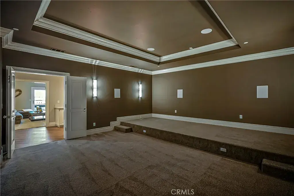 baths. Enjoy soaring 14-foot ceilings, state-of-the-art media room, dedicated office & a chef’s kitchen with seamless access to the expansive