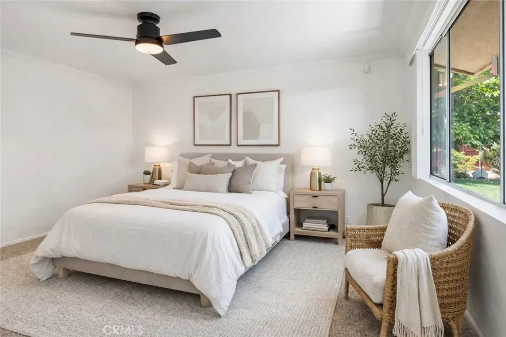 Introducing this beautifully maintained single-story mid-century ranch in desirable South Loma Linda, ideally located within walking distance to Loma Linda University, VA Loma Linda Healthcare System, and Hulda Crooks Park. This inviting residence offers a spacious formal living and dining area, enhanced by thoughtful upgrades including updated lighting, a new garage door, freshly painted garage interior, upgraded bathroom fixtures, and new shower doors. The open kitchen is designed for both everyday living and entertaining, featuring a new stovetop, new hood, upgraded wall oven, and dishwasher. The home offers four bedrooms, with one currently configured as an office (no closet), providing flexibility for today’s lifestyle. Step outside to a private backyard retreat with mature trees, a lush lawn, and a covered patio, perfect for relaxing or hosting gatherings. Additional highlights include an attached two-car garage with storage cabinets, a convenient quarter bathroom, and direct backyard access. Located in a well-established neighborhood near parks, schools, and everyday amenities, this home blends comfort, convenience, and timeless appeal. Photos include virtual/AI staging for visualization purposes only. Property is unfurnished.
