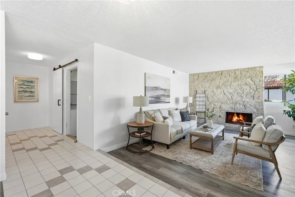 One of the home’s standout features is the overgrouted stone fireplace, anchoring the living room and bringing warmth, character, and timeless texture to the interior. Whether hosting guests or enjoying a quiet evening at home, the flexible layout offers plenty of room to relax and connect.