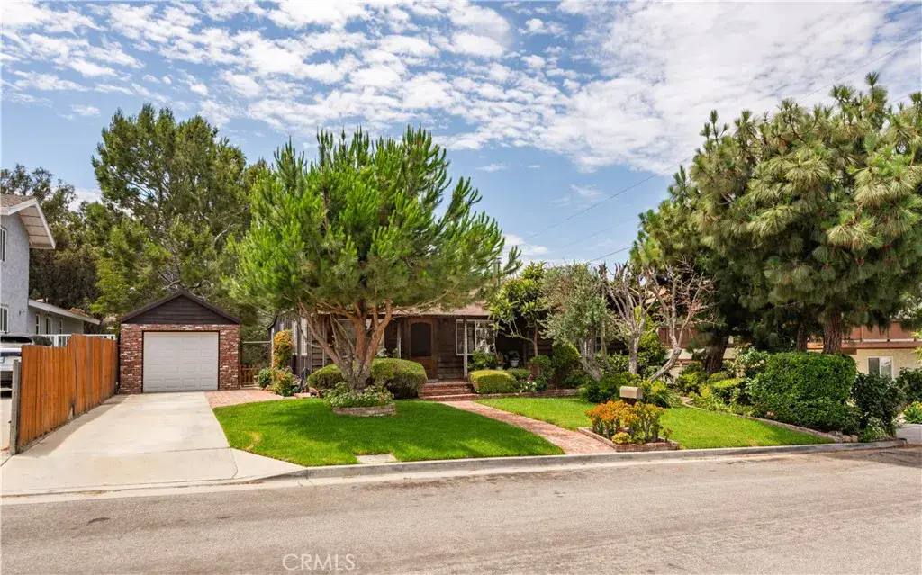 Huge over 16,000 sq. f. lot in Lomita Pines!!! This wonderful cottage nestled on quiet cul de sac street with an ADU in the desirable Lomita Pines, the main house is 2 bedrooms, 1 bath and off the garage a separate studio ADU 1 bed, 1 bath with laundry inside. Collect rent and live in the main house, Build a new ADU and oversized garage on this property!!! Multiple upgrades include a chef’s designer kitchen with newer cabinets, granite counters, stainless appliances and vaulted ceilings, tankless water heater, updated bath, Toto and Moen, a bright airy service porch and primary bedroom opens up to the balcony covered porch. The entire home just beams with tons of natural light. Nicely updated, well appointed single family home with HVAC and beautifully maintained. This amazing wooded Pine Tree Lot has tons of opportunity. Out back there is a wonderfully private covered patio, an additional meeting cabana, a brick and mortar freestanding pizza oven, a fairytale bridge and amazing views of your over 16,000 square foot lot that seemingly goes on forever.