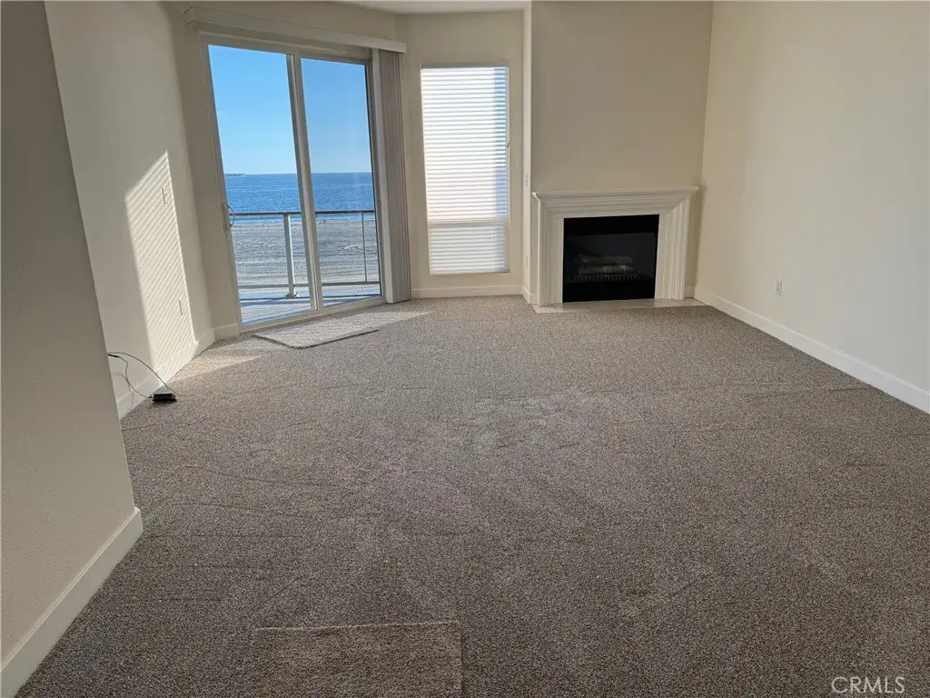 Immaculate 3 bedroom condo with a panoramic front on ocean view of the Beach, Marina, and Queen Mary. Ocean vistas greet one from the living room, dining area, kitchen, and primary bedroom. Brand new paint, carpet, and baseboard molding throughout. Amazing living room/ dining area features a cozy gas fireplace with direct access to a picturesque balcony. Open floor plan includes a Chef’s Kitchen with granite counter tops, brand new Kitchen Aid Refrigerator, microwave, Bosch Dishwasher, G.E. Range with gas top burners, breakfast counter bar, and plenty of storage. Primary Bedroom comes equipped with lighted ceiling fan and sliding glass doors to the balcony. Ensuite Bathroom is composed of dual sinks, separate glassed in shower, and oval shaped soaking tub with tile surrounds. Spacious CA. Walk-In Closet embodies built-in shelves, cabinet, and several drawers (including a jewelry compartment). Second and Third Bedrooms include Plantation Shutters as well as ceiling fans. Additional features comprise central A.C., new side-by-side washer/dryer, 2 separate parking spaces, and 2 bike racks on the main floor. Truly a place to come home to with direct beach access.