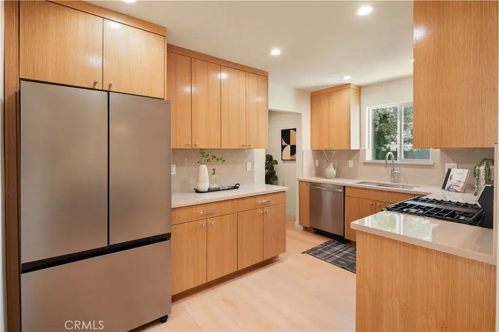Welcome to this beautifully renovated 3-bedroom / 2-bathroom home in the heart of one of Long Beach’s most desirable neighborhoods on a beautiful tree-lined street! Heavily renovated with a new master suite, this property is fully turnkey and built to last. Step inside to discover a bright floor plan, featuring brand-new flooring, recessed lighting, and large windows that fill the space with natural light. The living room flows effortlessly into the dining room and kitchen, complete with Taj Mahal quartz countertops, new stainless steel appliances, and custom white oak cabinetry – perfect for entertaining and everyday living. The newly built master suite offers a serene retreat with large windows, a walk-in closet, and a comfortable walk-in shower. The two additional bedrooms share a beautifully updated full bathroom. The spacious and shaded backyard is a perfect setting for hosting and comes landscaped with privacy hedges, mature old growth trees, and decomposed granite. Other highlights include new central A/C and heating, a dedicated laundry room with machine hookups, and an attached 1-car garage prepared for EV charging. Located walking distance from Bixby Elementary, Lazy Acres, Trader Joe’s, and much more, this home offers both tranquility and easy access to Long Beach’s top offerings.