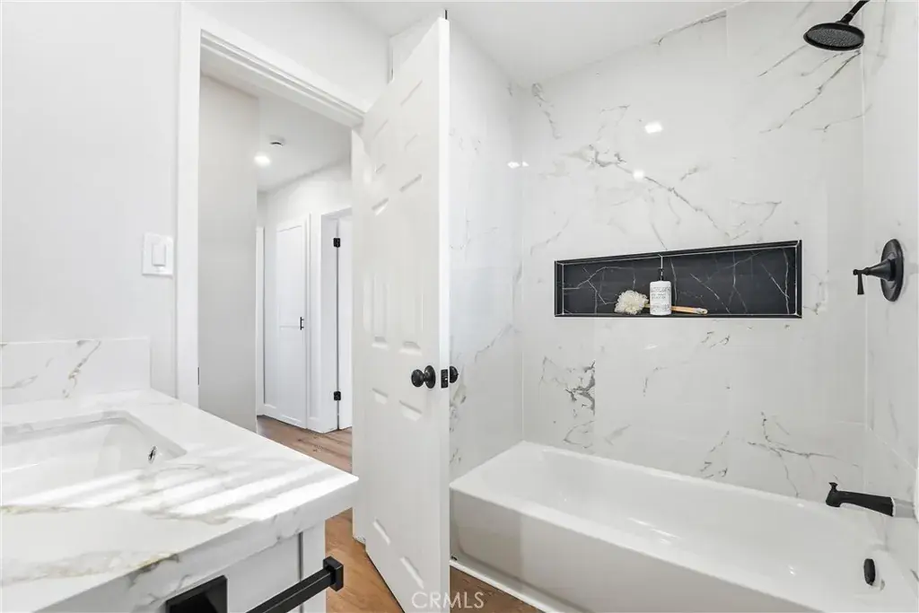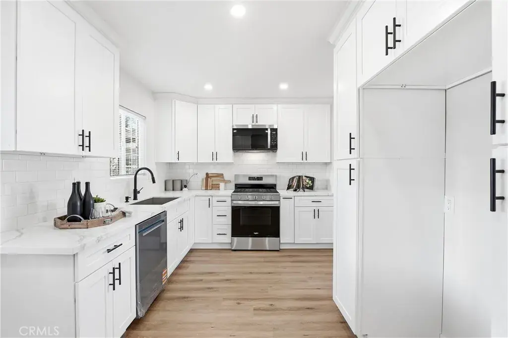 Welcome to this beautifully fully remodeled home and potential ADU in the Westside of Long Beach, where modern upgrades meet timeless charm. From the moment you arrive, you’ll appreciate the fresh exterior paint, new stucco, landscaping and inviting curb appeal. Step inside to discover a brand-new kitchen with beautiful cabinetry, countertops, and brand new appliances! Thoughtfully updated with stylish finishes, complemented by new flooring, recessed lighting throughout, fresh interior paint, dual pane windows and new window blinds, creating a bright, clean, and move-in-ready space. A tankless water heater, and an indoor laundry area are also a huge highlight for a busy lifestyle. The full bathroom has also been remodeled and designed with the most beautiful finishes. Situated on a generously sized lot, with a lovely covered patio that is an ideal place for a summer hangout or to sit and unwind. The backyard is a true highlight-featuring mature fruit trees and ample space to add an ADU in the detached garage, making this property ideal for future expansion, rental income or multigenerational living. Perfectly located near shopping, dining, walking distance to schools. A property like this does not hit the market often. It is truly a gem and a must see!