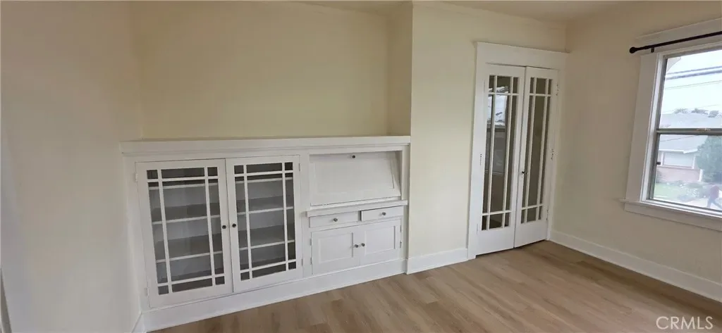 Spacious 2 Bedroom, 1 Bath, approx. 1000 square foot upper level apartment in a Duplex on corner lot on 4th Street and Gladys. Newer interior paint, remodeled kitchen, new flooring, and lighting. Lovely picket fenced-in green grassy yard surrounds the property. This historical beauty has many of the original details that have been well maintained including built-in cabinets and doors, built-in secretary, crown molding, built-in bathroom vanity and mirror. Two good sized bedrooms and large closets. Additional walk in sewing room just off the living room perfect for a small office or storage space and built-in linen storage cabinet drawers in the hall. Kitchen features electric stove, Microwave hood vent, floor to ceiling cabinets, and refrigerator. Water paid by owner. Coin Operated laundry service on site. Professional gardening and management service. Street parking only. Ralphs neighborhood grocery store right across the street. This property is convenient to the Beach and the 405, 605, and 22 freeways. Long Beach offers an endless variety of shopping, dining, entertainment, and recreation options and is home to prestige Colleges, Universities, Hospitals and Medical Centers. 4th Street is known for its small shops, eateries, and art exhibits that stretches from Laguna Lake all across Long Beach to the 710 Freeway.
