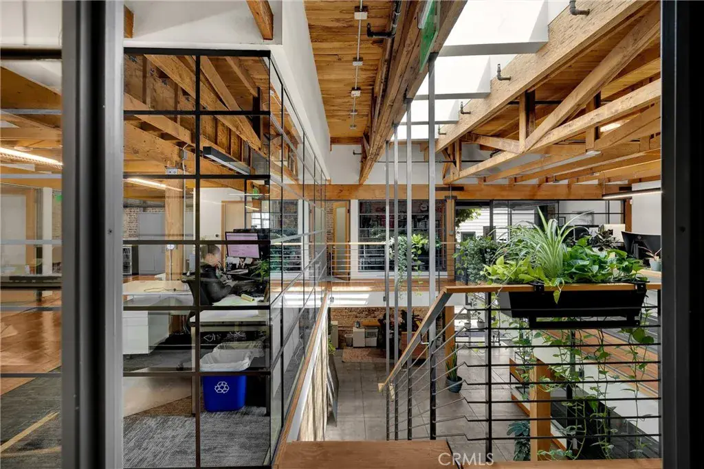 From the moment you step inside, you’re greeted by striking architectural details — soaring ceilings, exposed brick walls, sleek cement floors, and expansive floor-to-ceiling glass that floods the interior with natural light. Every corner of this office exudes style, energy, and inspiration.