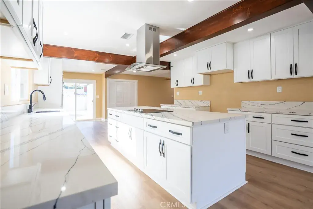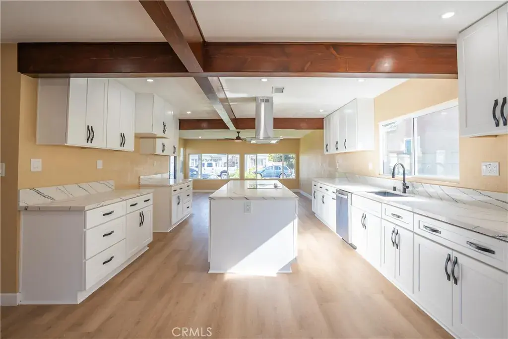 At the heart of the home is a huge, open-concept kitchen designed for both functionality and entertaining. The kitchen boasts brand-new cabinets, elegant quartz countertops, a massive center island, and all-new appliances, seamlessly flowing into the living and dining areas to create a true open floor plan.