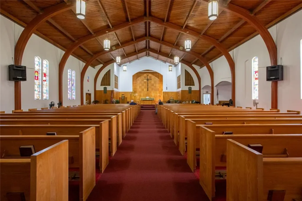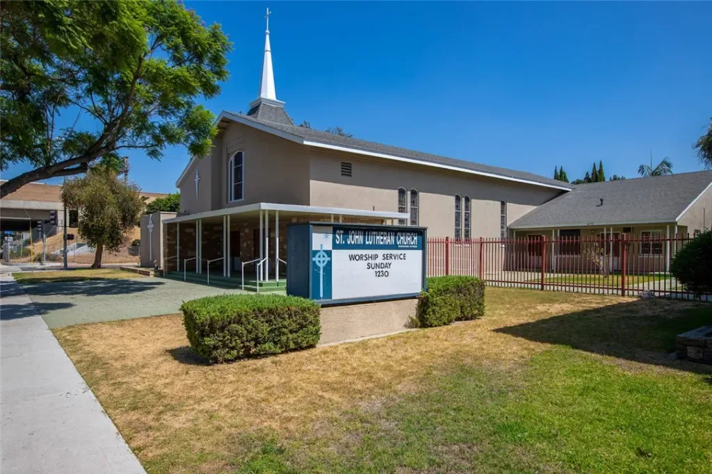Wow! Wow! Wow! St John’s Evangelical Lutheran Church is located in a Residential Neighborhood of North Long Beach, Property is situated on 1.70 acres of land, Property includes Sanctuary, Gym and School/Commerical Kitchen, The Sanctuary is 5700 sqft and seats 340, this Church Building has 2 Offices with a small Anteroom, 3 Bathrooms, Gym is 5200 sqft and seats 642 for Assembly also the Gym can seat 300 for Dining as needed and has 2 Bathrooms with showers, School/Commercial Kitchen is 8500 sqft, and has an Office, Breakroom, 4 Classrooms, Commerical Kitchen and 2 Bathrooms, also Property has Large Grass area for School to use during breaks, Covered Patio Area, Sanctuary has Vaulted Wood Ceilings, Glass Windows and Beautiful Wood Interior, Central Air Conditioning in School and Gym, There are approximately 30 Parking spots, Sprinkler System Lawns Front and Back, Close to Freeways, Currently the School is leased with the YMCA…