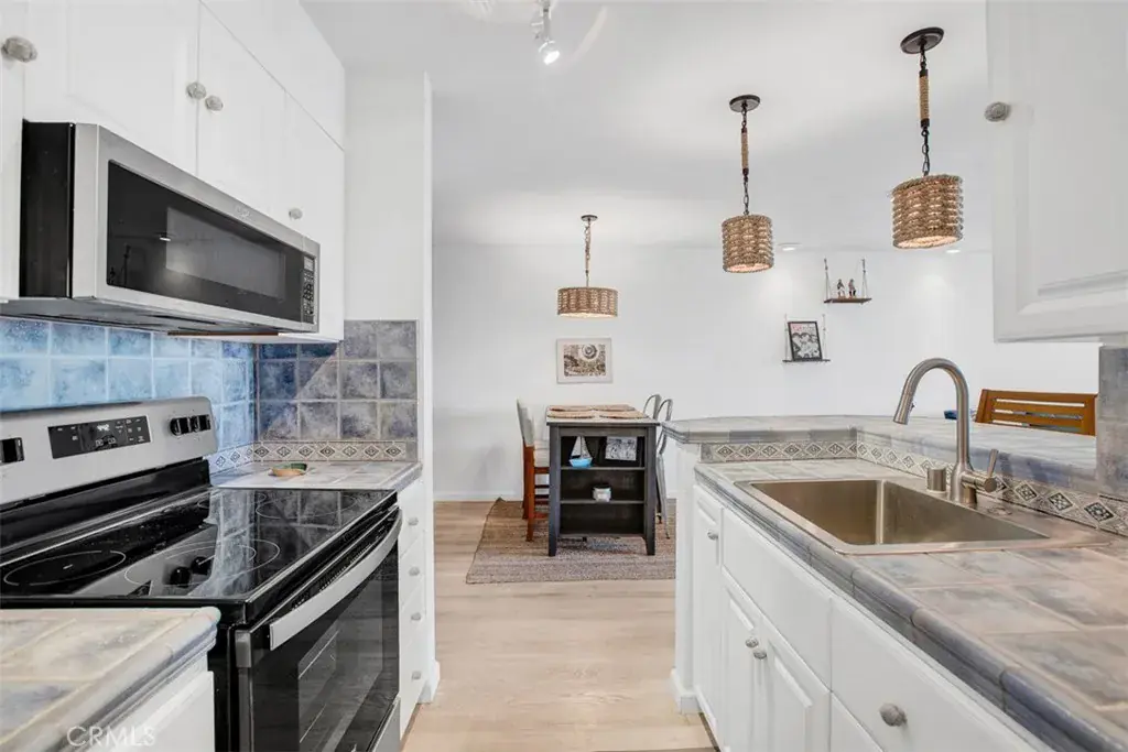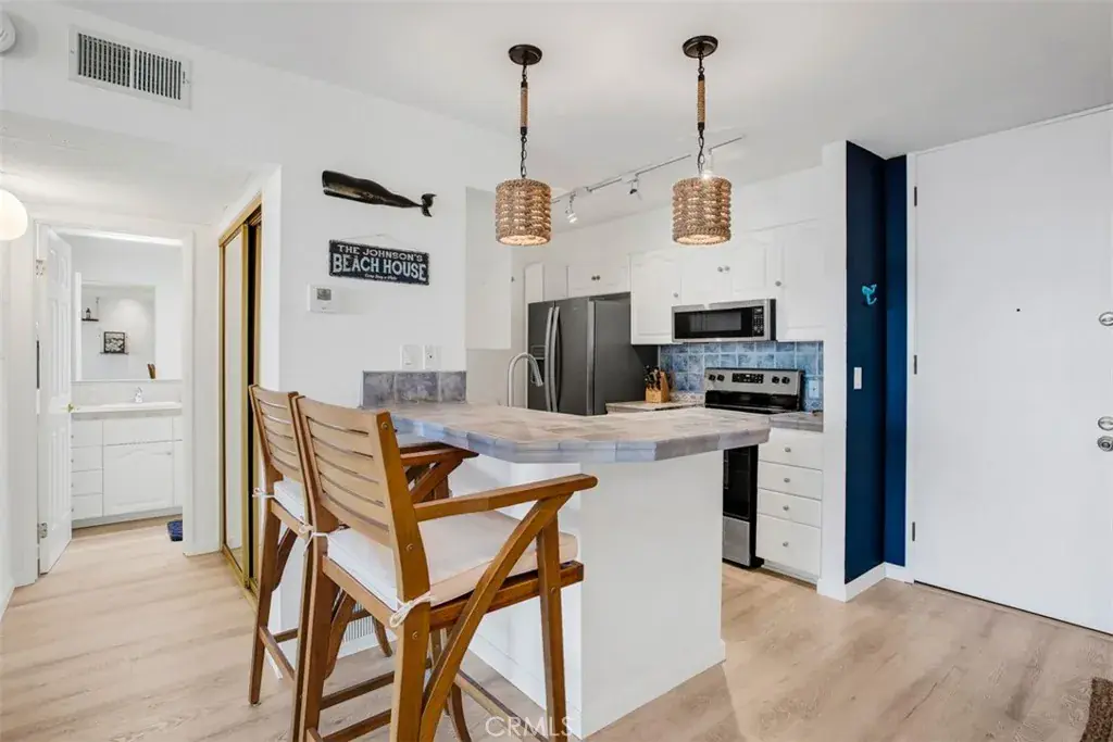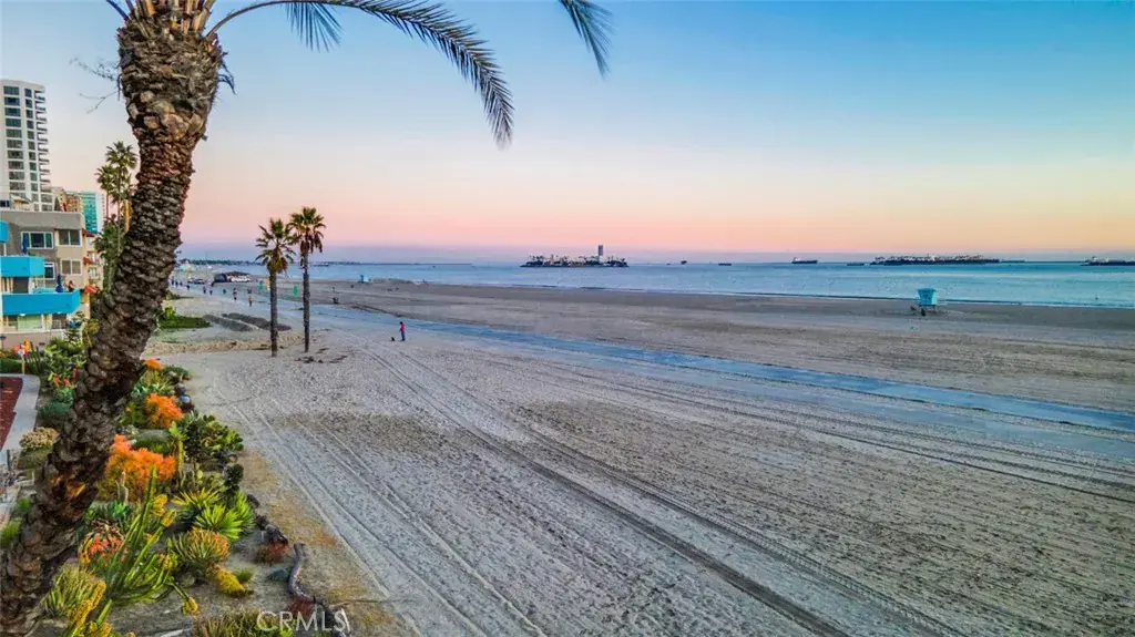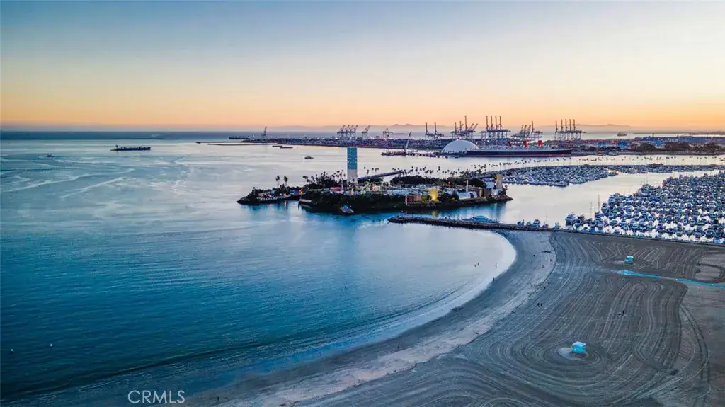 The quintessential beachfront lifestyle. Experience breathtaking ocean and Queen Mary vistas from the comfort of your home. This 2nd level corner unit condo is located in the heart of Long Beach’s exciting nightlife, offering views of the pacific ocean with The Queen Mary, Island Grissom and Island White as the backdrop. Step in the front door and you’re immediately taken back by the unobstructed views of the ocean. With a modern nautical theme, you’re greeted by newer wood-like flooring, tall ceilings and a bright and airy open floor plan. To the right, a well-appointed fully equipped Kitchen including a microwave, dishwasher, stove, and refrigerator. Enjoy your dining at the breakfast bar, dining area or outside on the balcony. Boasting one spacious bedroom with a walk-in closet and an oversize window to take in the ocean views and enjoy the breeze and sounds of crashing waves. Generous sized bathroom with double sink vanity and tile countertop. The spacious living area with a double pane slider brings in an abundance of natural light and leads out to your private balcony where you can relax and take in expansive ocean panoramas! As the sun starts to set your scenery changes as Grissom Island and the Queen Mary light up! Plenty of community amenities such as laundry facilities, a pool, spa, gym, sauna, and a sundeck offering sweeping ocean views. Take the bike path from your unit up to Shoreline Village or down to Bayshore Park. Minutes from the property you can dine at Gaucho Beach, the Queen Mary, 555 and some of SoCal’s best dining. Enjoy endless activities from the Terrace Theatre, The Aquarium, Grand Prix, Museum of Arts, and so much more!