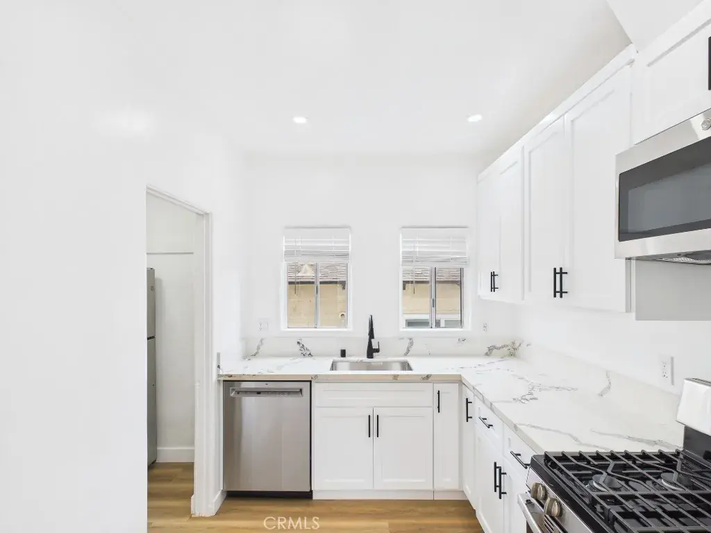 Welcome home to this beautifully renovated and expansive 2-bedroom, 1-bath apartment located in the heart of Long Beach. Offering 1,150 sq. ft. of living space, this home features rich brown wood floors, an open and airy layout, and abundant natural light throughout. The modern kitchen is outfitted with white cabinetry, sleek quartz countertops, and stainless steel appliances, perfect for cooking and entertaining. Additional highlights include in-unit washer and dryer, AC/heat, and large walk-in closets that provide exceptional storage.