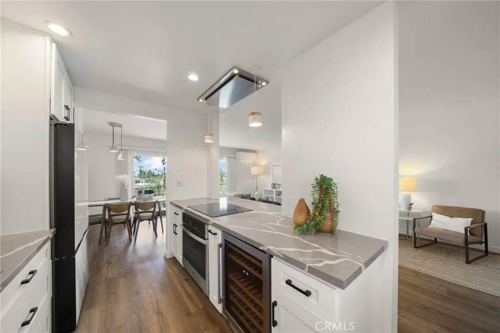 Top-floor corner living with ocean-facing orientation and sweeping treetop and neighborhood views! This is the one that feels different the moment you walk in. Flooded with natural light and positioned for privacy, this beautifully upgraded condo offers the ideal blend of coastal lifestyle and modern design. Step inside to over $100,000 in thoughtful improvements, including wide-plank LVP flooring throughout, recessed lighting, dual pane windows, and a mini-split system for efficient heating and A/C. The renovated kitchen is a standout, featuring sleek quartz countertops, stunning stainless steel appliances including a glass-front refrigerator and a wine fridge that makes entertaining feel effortless. The open living space flows seamlessly to a large private balcony perfect for morning coffee, evening unwinding, or simply enjoying the ocean breeze and neighborhood views from above it all. Both bathrooms have been tastefully remodeled with contemporary finishes, offering a clean, modern feel. The secondary bedroom features a custom Murphy bed wall unit, allowing for flexibility as a guest room, office, or both.Additional highlights include secure building entry with lobby and elevator access, a Ring doorbell for added peace of mind, and a dedicated parking space in the gated garage complete with storage and an outlet for EV charging. All of this is just moments from the beach, bike path, shopping, and dining—because living here means your weekends just got a lot better.