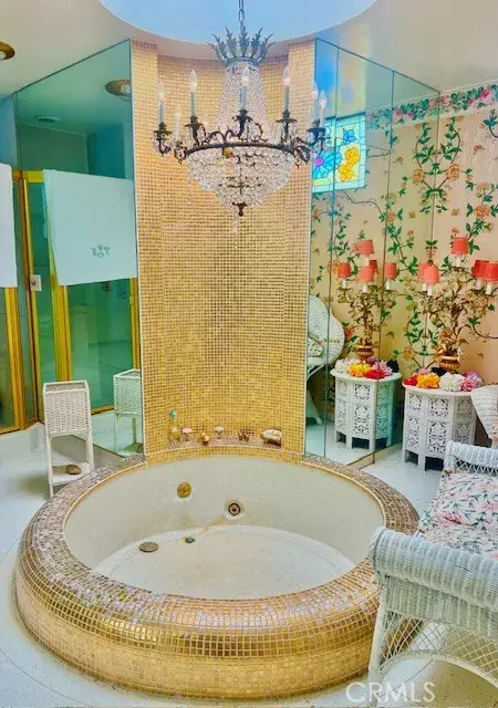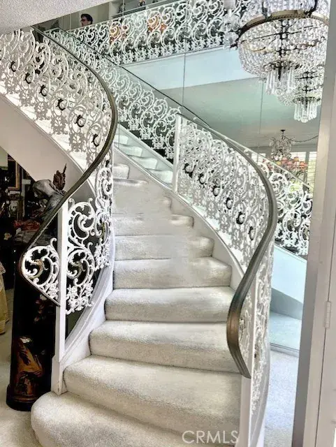 WELCOME HOME to this spectacular one of kind custom built property located overlooking Recreation Park golf course. This very unique home is a well designed combination of Mid Century Modern and traditional elegance and very upgraded finishes including terrazo flooring, marble countertops, numerous finished white columns, two marble fireplaces, gold plated door knobs, stainless appliances in kitchen, custom wall finishes pluse solar panels. Over 5000 s.f. of spacious living and entertainment areas including an expansive living room with marble fireplace, large great room with marble fireplace & bar area, formal dining room, separate office, well appointed kitchen with center island and numerous cabinets plus built in desk and a first level bedroom suite. All built around access and views to the large patio area with pool and entertainment room with wine storage, built brick barbeque and dining area. Up the grand curved staircase are 3 bedrooms including a very spacious primary suite with attached large balconey that looks out to the golf course, a primary suite bathroom finished in terrazo and marble with large sunken tub and two separate vanities. Lots of closets including a large walk in cedar lined closet. Down the hall is another bedroom suite with golf course views. closets and bathroom with an oversized round terrazo shower. The middle bedroom has a wall of windows with golf course views and balcony. A third bathroom boasts walk-in closets and a round terrazo sunken bathtub plus a large vanity sink area all finished in white marble. There is a 5th bedroom/bathroom studio above the garage with separate outdoor access. And the garage is spacious and easily accomodates 2 cars, laundry area and lots of storage. This 5000+ s.f. home sits on an oversized 11,000+s.f. lot and has been owned by the same family for over 60 years. Some furnishings are available for sale.
