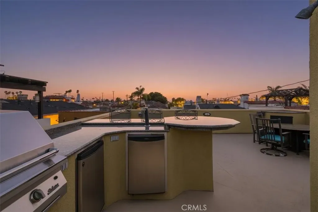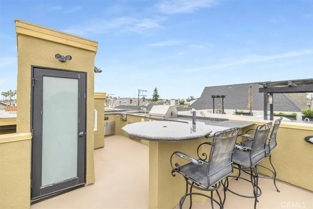Welcome to this beautifully upgraded Naples home, where thoughtful design and coastal living come together seamlessly. Featuring stunning tile and wood flooring throughout, this residence offers a warm yet modern aesthetic from the moment you enter. The gourmet kitchen is a chef’s dream, complete with stainless steel appliances, a commercial-grade stove with pot filler, refrigerator, double dish drawers, and an in-counter steamer—perfect for both everyday living and entertaining. The inviting living room showcases a coved ceiling with ambient lighting, creating a sophisticated and relaxing atmosphere. Entertain with ease at the stylish wet bar equipped with a wine cooler, kegerator, and bar refrigerator. A convenient powder bath is located on the first floor for guests. Upstairs, you’ll find a well-designed layout including a laundry closet with washer and dryer, two secondary bedrooms, and a built-in desk area ideal for work or study. The spacious primary suite offers a private retreat with a balcony, walk-in closet, and a luxurious en-suite bath featuring a soaking tub, dual sinks, and a multi-head shower. Enjoy indoor-outdoor living with multiple outdoor spaces, including a front porch, side porch, and a large rooftop deck designed for entertaining—complete with a built-in BBQ, sink, and refrigerator.
