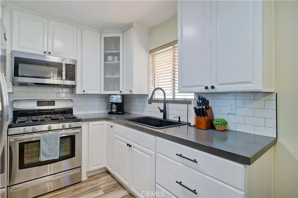 Over $20K in recent upgrades in this beautifully remodeled one bedroom condo with a full private garage on a lovely residential street in the heart of vibrant and eclectic Bixby Knolls. Super cute unit with only one shared wall and a fantastic layout! The kitchen is gorgeous and has new Quartz countertops, new custom Subway tile backsplash, a new oversized farm-style sink, new fixtures, and fresh hardware, giving it classic but hip, fun vibe. The extra large living room has ample space for entertaining or just relaxing and there is plenty of room for a home office. Sliding doors lead to the cute balcony – how fun would it be to start or end your day relaxing out here? There is a new double vanity, matching Quartz counters, new sinks, new faucets and new lighting in the bathroom. The ample bedroom is at the back of the unit for max privacy and it has a very good-sized walk-in closet. There is a ton of storage in both the unit and the garage (which also has a new garage door). Recent updates include a new energy-efficient mini split (keeps things comfortable year-round!), new LVP flooring and new custom light fixtures throughout. Set in the vibrant heart of Bixby Knolls, this home is tucked away on a quiet block but steps from restaurants, shops, and entertainment. The area is known for its dynamic energy, friendly neighbors, and ever-changing kaleidoscope of local hotspots. This is a great opportunity – don’t miss it!