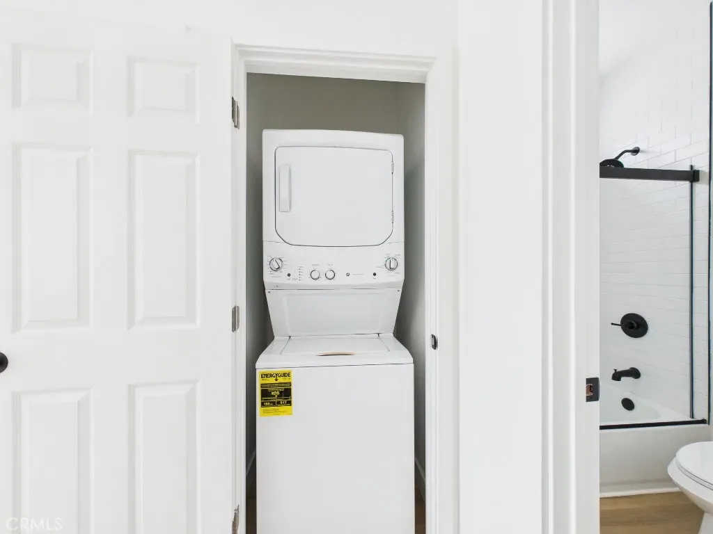 Be the first to live in this newly constructed upper level 2-bedroom, 1-bath ADU offering 650 sq. ft. of thoughtfully designed living space. This stylish home features light wood flooring, white quartz countertops, and a sleek kitchen equipped with stainless steel appliances and an oversized sink, perfect for both everyday living and entertaining. Enjoy comfort year-round with central A/C and heat, ceiling fans with remote controls, and the convenience of an in-unit washer and dryer. Both bedrooms include closets, and the home is solar-equipped, helping reduce utility costs. Step outside to a spacious private deck/patio, ideal for relaxing, BBQs, or hosting gatherings.