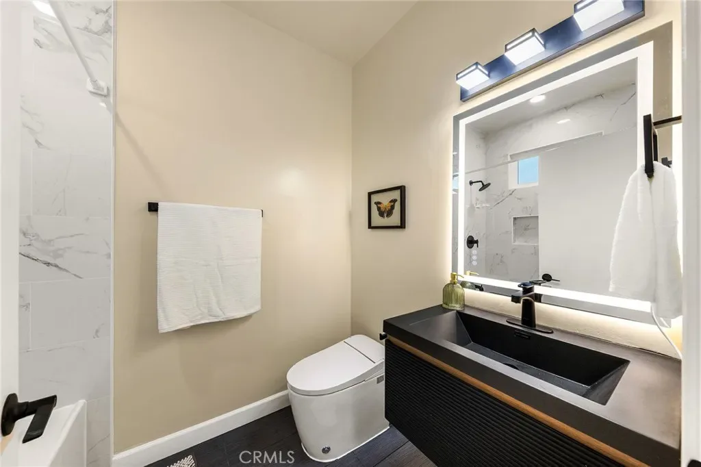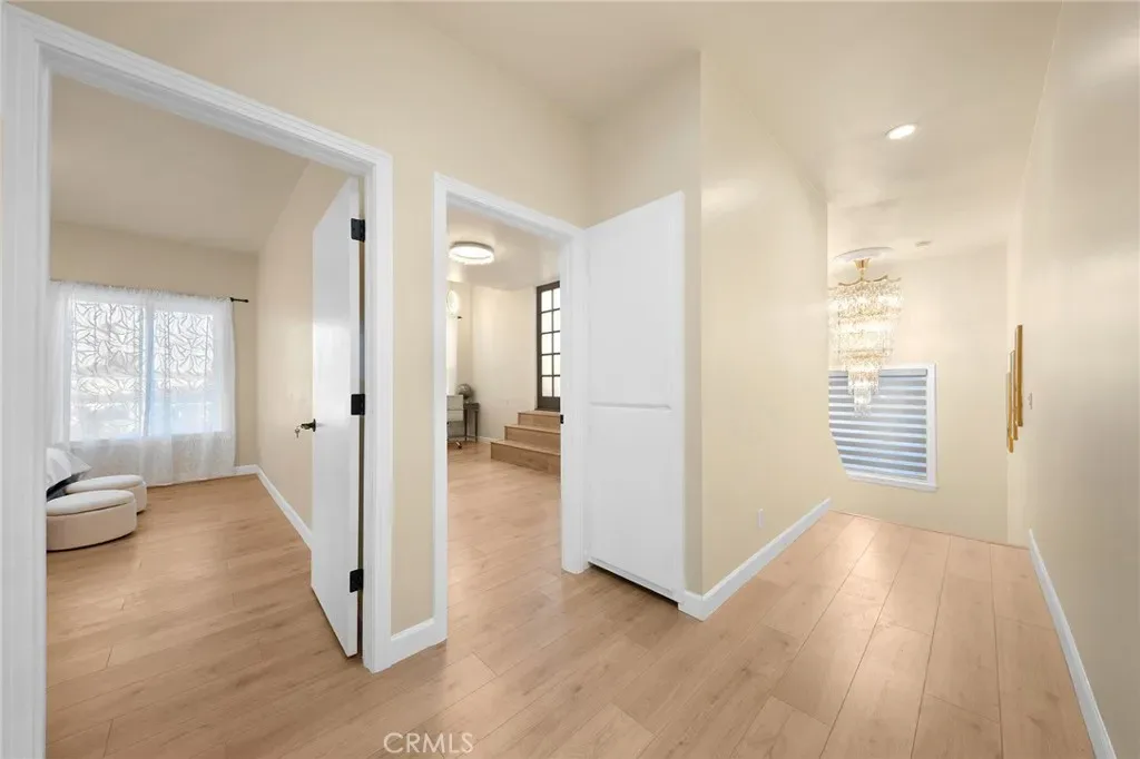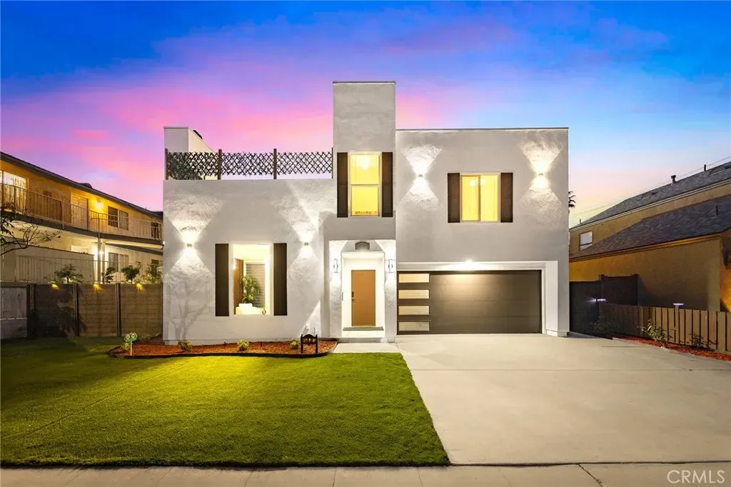 Step inside to admire the custom-made, imported crystal chandeliers with adjustable lighting and the living room’s unique ceiling design. The office seamlessly connects to the private rooftop deck, ensuring that every room is both spacious and filled with natural light. Enjoy amenities like skylights, smart home appliances and toilets, LED mirrors, and a walk-in closet. The waterfall-style island platform serves as a stunning centerpiece in the kitchen, while the spacious staircase is adorned with large tempered safety glass. Additional features include a double garage with epoxy flooring.Termite completed .