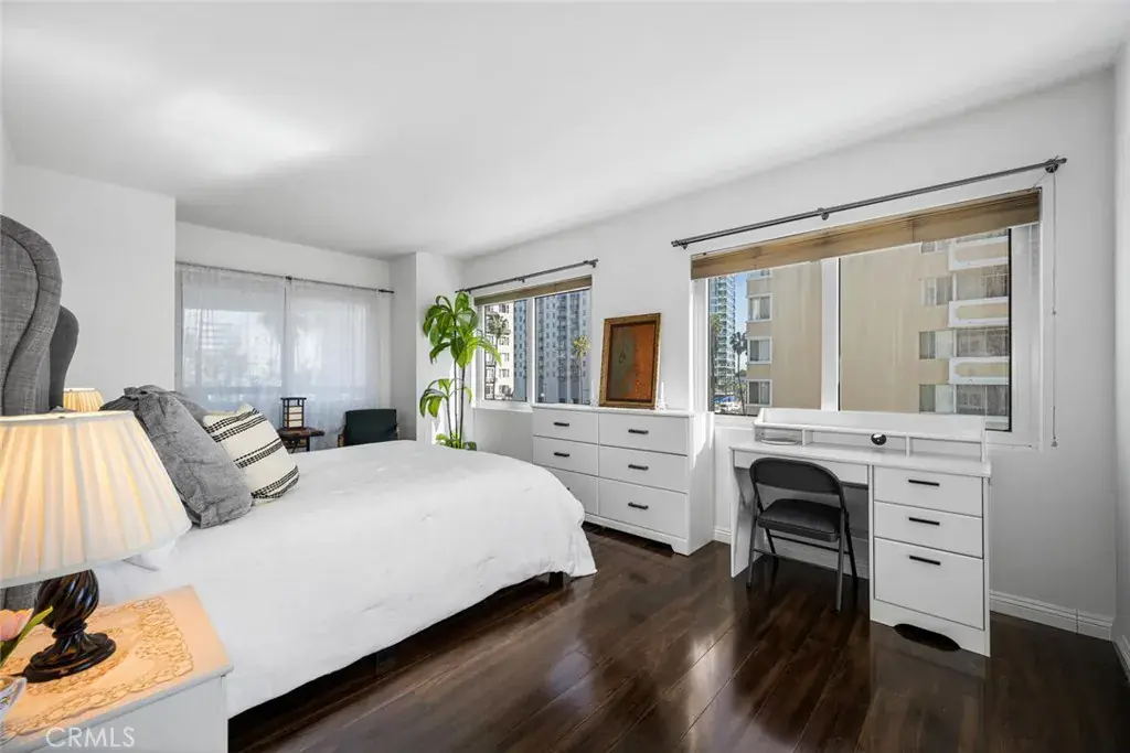 It’s not too often that a downtown condo offers the satiating satisfaction of a coastal view and the exciting vibrance of a city view, but here at 525 E. Seaside Way you can enjoy both. With 1,313sqft of living space, one of the largest floor plans offered, this Harbor Place 2 bed, 2 bath end unit condo is uniquely sought after, as these desirable units offer not one, but two balconies with distinctly different views, and are not often available. The convenience of in-unit full size side-by-side laundry, a host of closet space, and a luxury level amenity package that includes, 24hr security, mail room, heated salt water lap pool, jacuzzi, weight-room, men’s and women’s saunas, grilling station, meeting rooms, 80 (YES, 80!) plus visitor parking spaces, and more. This move-in ready unit has beautifully upgraded flooring throughout, upgraded kitchen, and soaking tub with shower in the guest bathroom. Enjoy the jacuzzi tub with separate walk-in shower and dual vanity in the master suite, in a sophisticated unit complemented by a bright, spacious layout, and two assigned parking spaces. Experience an elevated luxury high-rise lifestyle, in downtown Long Beach. Steps from entertainment, shopping, restaurants, beach paths, and so much more. Not only will you be privy to enviable views that are unmatched by grandstand spectators and tv viewers alike during the annual Long Beach Grand Prix car races, but you’ll be near the epicenter of the 2028 Summer Olympic Games in which the city of Long Beach will play host to numerous events. Take this opportunity to establish your place in downtown Long Beach’s lively community while you can!