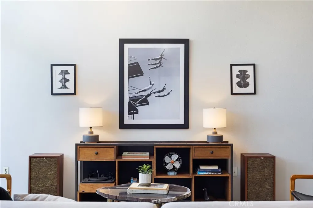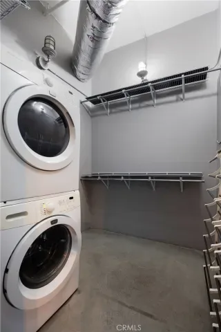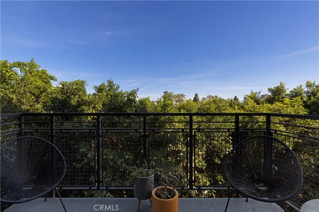 The remodeled bathroom offers a spa-like feel with a two-person steam shower, while the spacious laundry room provides abundant storage. A thoughtfully separated bedroom area adds privacy while maintaining the open loft aesthetic. Step outside to your private balcony and enjoy views toward Signal Hill and Los Angeles.