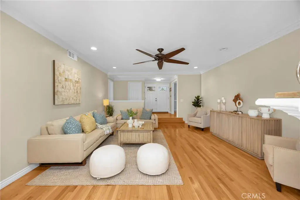 Welcome to this wonderful charming El Dorado Park Estates home! This lovingly maintained single-family home has the perfect open floor plan & feels so inviting the moment you walk in. From the striking double-door entry to the smooth ceilings, crown moldings, dual-pane french windows, beautiful original hardwood floors, and central A/C, this home delivers comfort and style in equal measure. Gather in the sunken living room with soaring 9-foot ceilings and a stunning fireplace, drenched in warm natural light from sliding glass doors leading out to the relaxing private patio. The kitchen boasts stainless steel appliances & flows into the picturesque dining room, complete with a charming breakfast nook made for quiet mornings with coffee. The primary suite is your private escape with dual custom-organized wardrobes and a beautifully remodeled ensuite bath. The warmth of this home can not be denied, it checks every box and then some. Within Newcomb Academy school district, this home is a rare opportunity in the heart of El Dorado Park Estates—don’t miss it!!