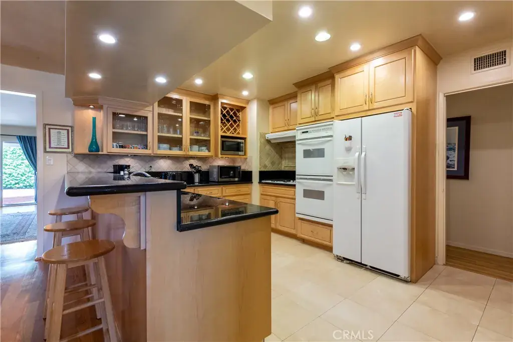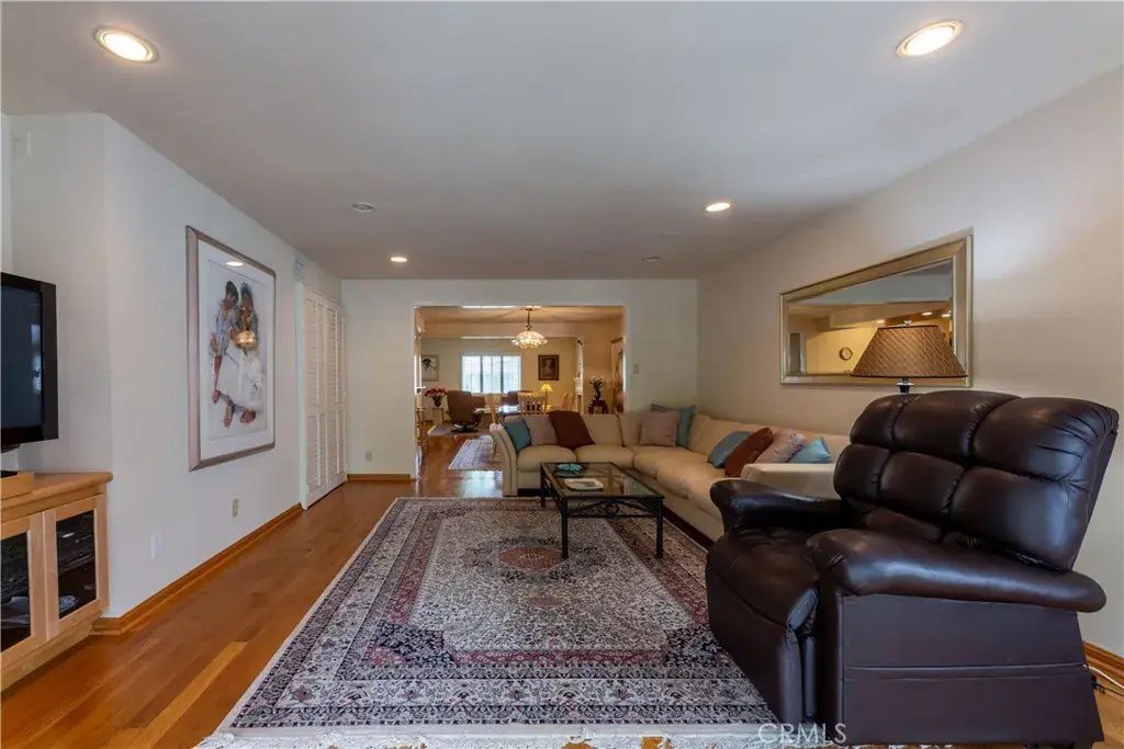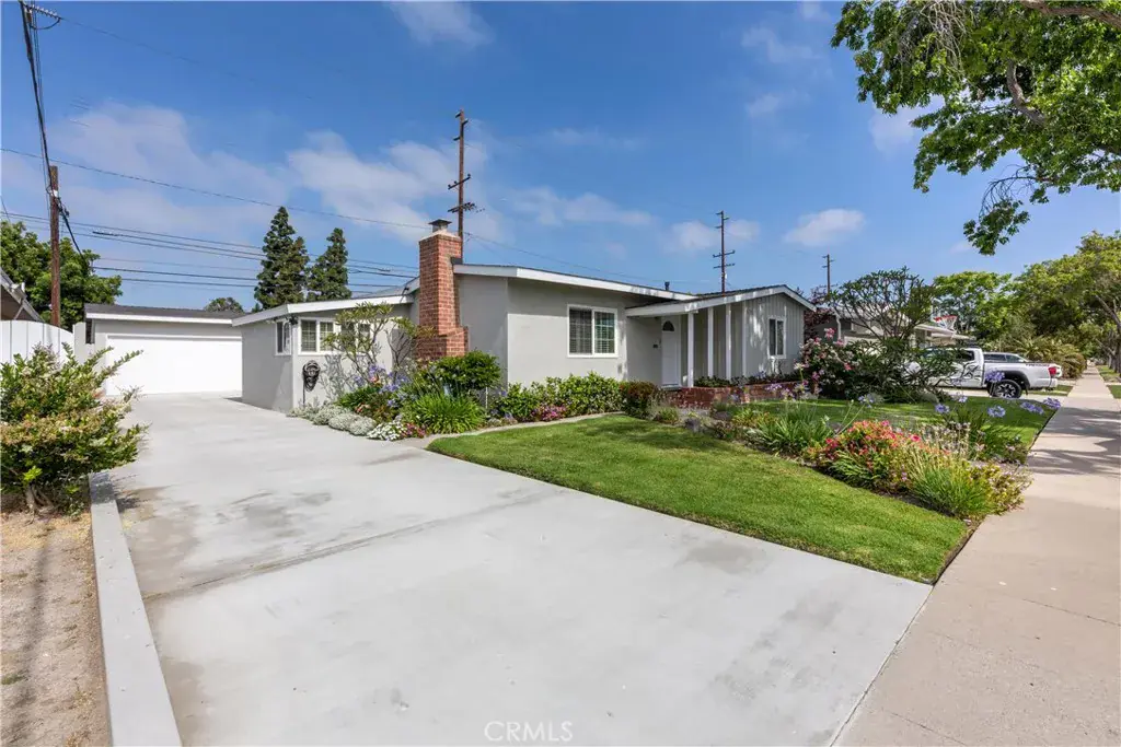 Beautifully appointed home in the highly sought-after East Long Beach neighborhood of La Marina Estates. This charming mid-century junior executive residence retains the iconic angles and architectural character of the original design, complemented by thoughtful modern updates and generous additions, including a spacious primary suite (2002), office (2001), and family room (2006). Gleaming hardwood floors and elegant travertine tile lead you through an open, light-filled layout. The vaulted living room features a cozy fireplace and a large picture window, seamlessly flowing into the dining area and expansive family room beyond. Just off the dining space, the office offers custom built-ins and a pocket door, creating a private workspace or flexible guest area. The kitchen opens to the dining area and showcases glass-front cabinetry, a walk-in pantry, and a five-burner range—perfect for both everyday living and entertaining.