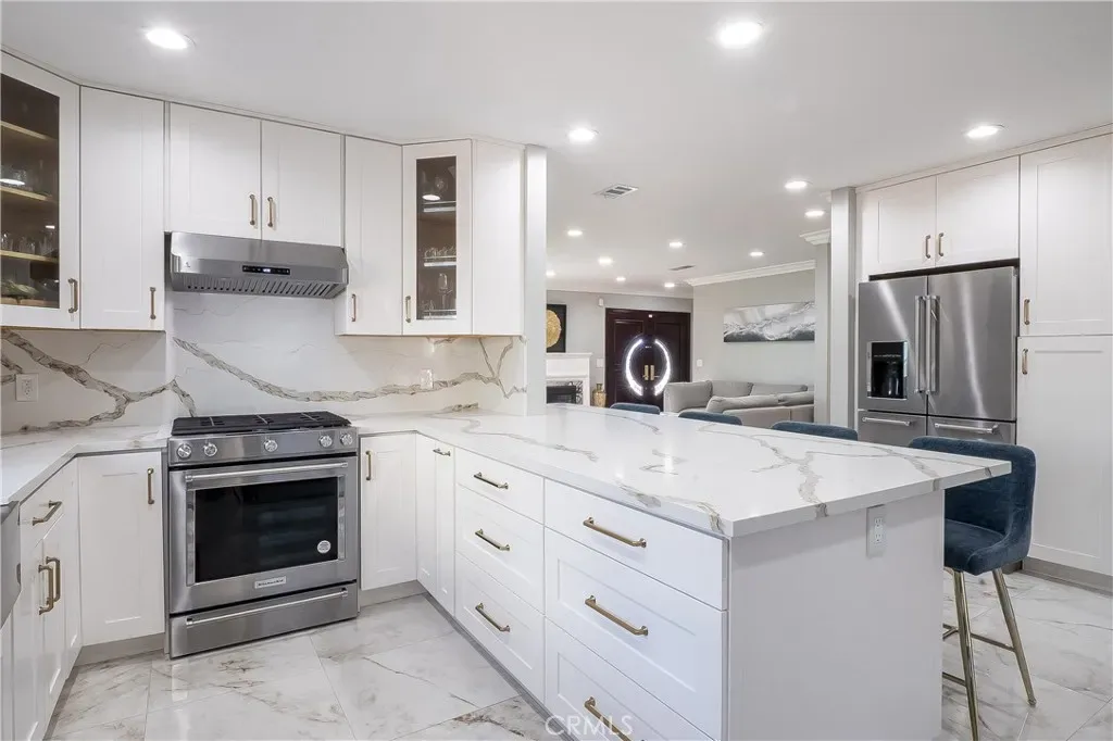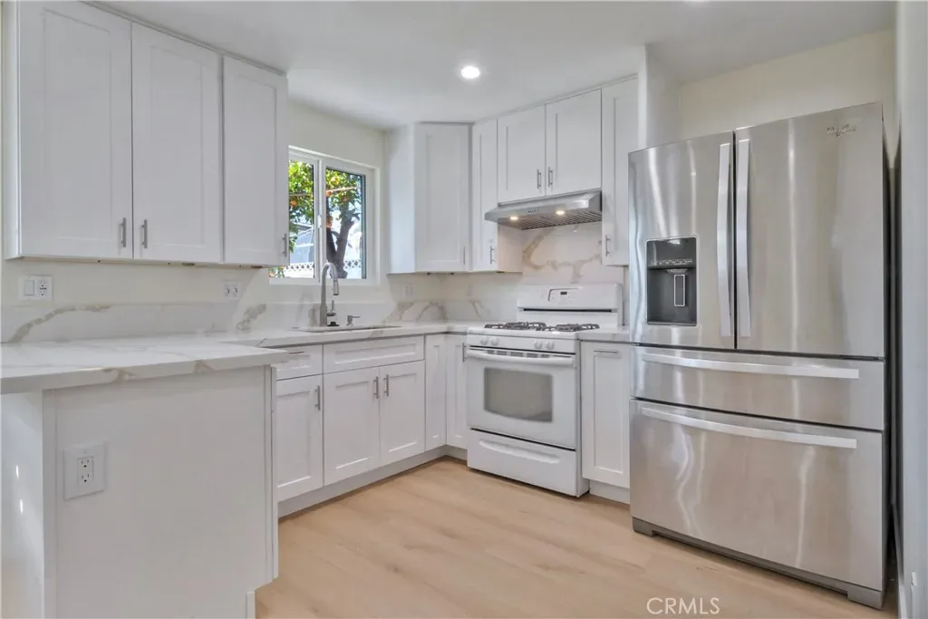 Beautifully maintained home in the highly desirable Lakewood Village neighborhood of Long Beach, now coming to market at a newly reduced price. This inviting residence showcases a thoughtfully updated kitchen featuring high-end appliances, custom cabinetry, and modern finishes—perfect for both everyday living and entertaining. Elegant European-style flooring flows throughout the home, enhancing its contemporary appeal while offering durability and easy maintenance. The private backyard is designed for seamless indoor-outdoor living and features a stylish stainless steel and wood patio covering—ideal for dining, relaxing, or hosting gatherings. Adding exceptional value is a permitted ADU completed in 2025, perfect for an in-law suite, guest house, or rental income opportunity. Filled with natural light and offering a functional, welcoming layout, the property also provides ample space to build an additional ADU and even a pool. Conveniently located near parks, shopping, dining, and easy freeway access, this home offers the perfect blend of comfort, flexibility, and location in one of Long Beach’s most sought-after neighborhoods.