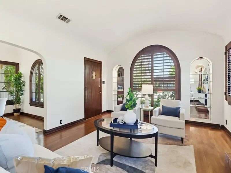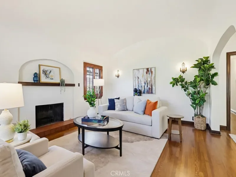 This is the Spanish Revival you’ve been dreaming of—rich in character, beautifully maintained, and brimming with original charm. Nestled on a hidden gem of a street in the coveted Los Cerritos neighborhood of Long Beach, this home stands out with its thick stucco walls, graceful arches, red-tiled roof, and lush, mature landscaping. Step inside and fall in love with the soaring ceilings of the living room, highlighted by a dramatic arched front window, a cozy fireplace, built-in shelving, and wrought-iron original wall sconces. Arched transitions lead you seamlessly into the elegant dining room and a delightful breakfast nook—perfect for enjoying your morning coffee. The smooth white walls throughout the home are perfectly complemented by rich, dark wood flooring and original woodwork, showcasing timeless craftsmanship. The kitchen, bathed in sunlight from its south-facing window, is bright, airy, and conveniently adjacent to a side entrance leading to the laundry room. Down a long, arched hallway, you’ll find a cozy den featuring French doors that open to the backyard, where lush Bougainvillea adds a vibrant pop. Both the den and the rear primary bedroom offer tranquil backyard views, creating a serene retreat. The spacious primary bedroom has high ceilings, large windows, ample storage, and an ensuite bathroom with a walk-in shower and a generous vanity area. The private backyard is perfect for relaxing or entertaining and includes an oversized garage with alley access. Recent updates include a brand-new, permitted roof and a 2024 HVAC system, ensuring modern comfort in this timeless home. Located in the heart of Los Cerritos, this neighborhood is known for its walkable charm, proximity to Bixby Knolls’ shopping and dining, and easy access to freeways—all while maintaining a welcoming, small-town vibe. This exceptional home is a rare find and is sure to capture hearts quickly. Don’t let it slip away!