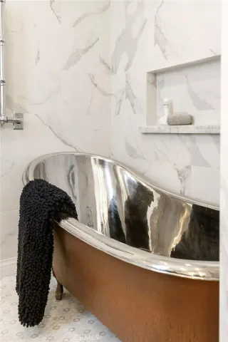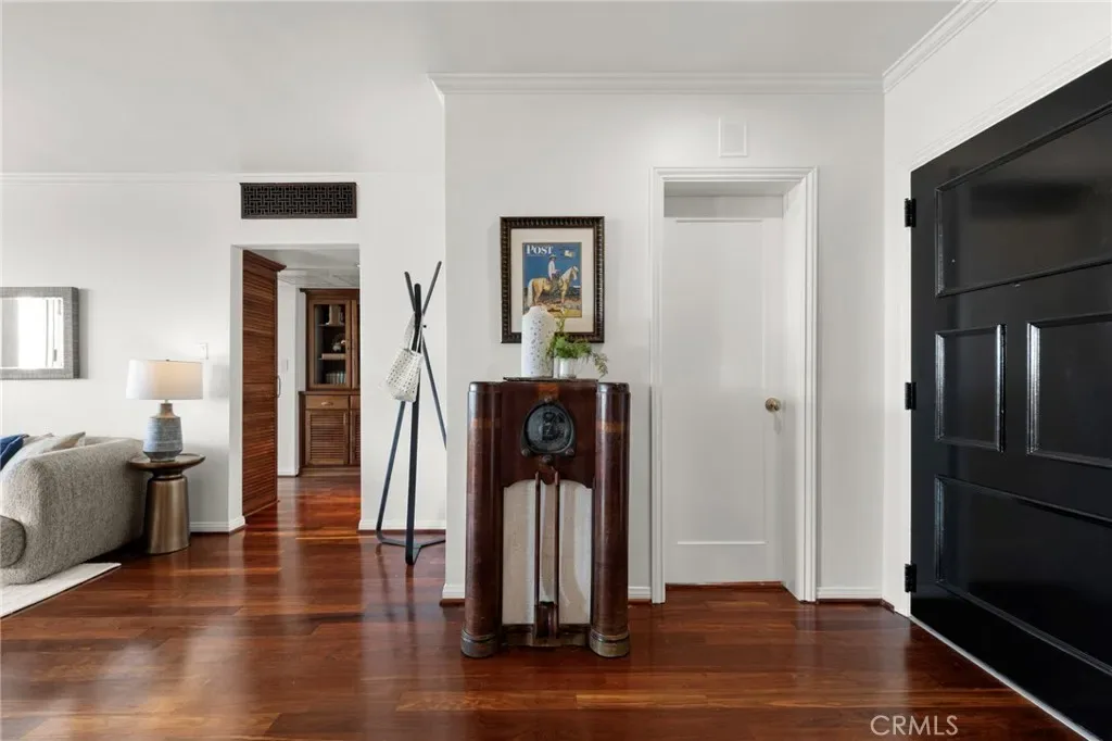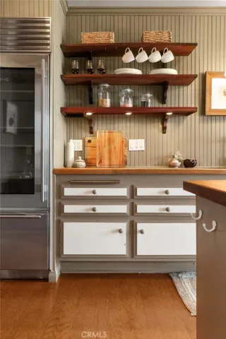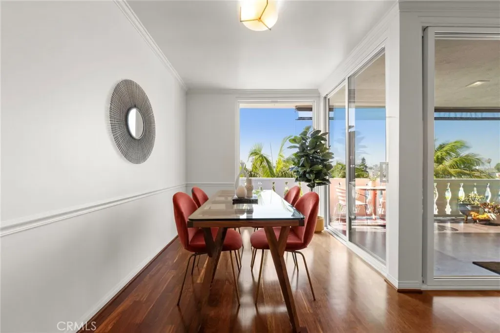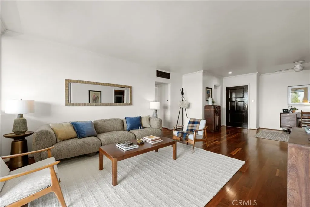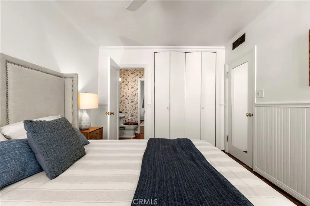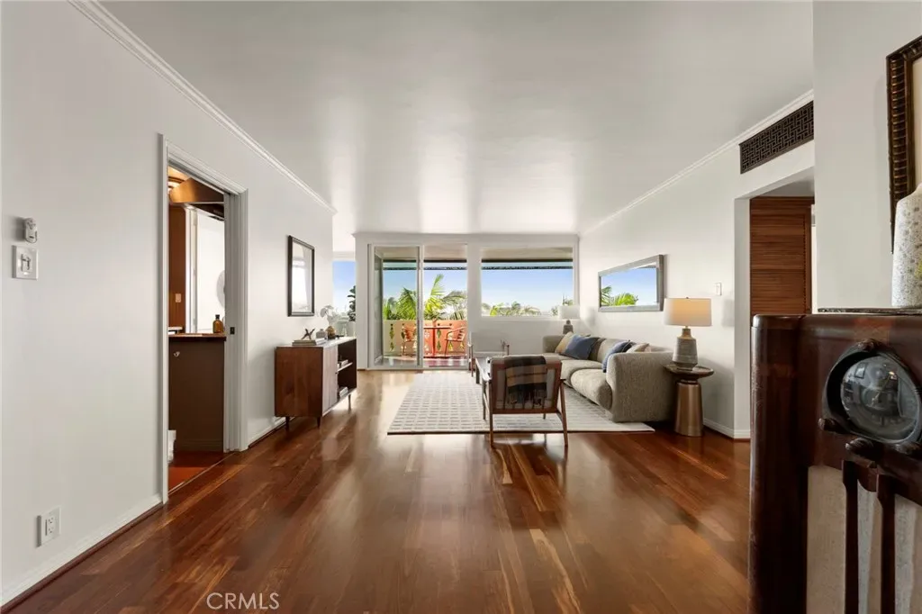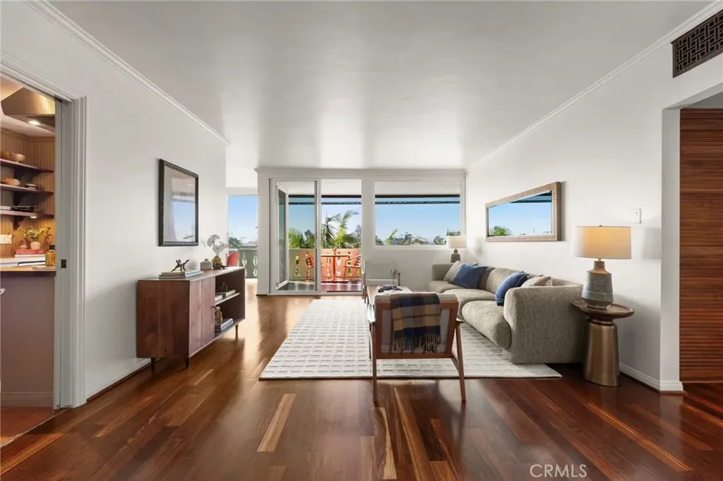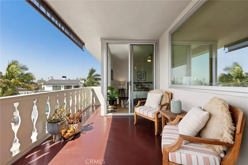 Top-floor corner unit on Naples Island with a private balcony and treetop views, offering a rare blend of privacy, natural light, and coastal living. Nestled in one of Long Beach’s most sought-after waterfront communities, this thoughtfully curated residence has been meticulously updated with quality finishes and attention to detail throughout. The custom kitchen (2018) features teak countertops, mahogany shelving, painted wainscoting, and premium appliances including Sub-Zero refrigeration and a Wolf cooktop with hood. A rare 1930s vintage tile backsplash adds character, while a Philippe Starck pendant provides a modern focal point. Rosewood flooring (2017) runs throughout the home, complemented by Milgard double-pane windows (2020) for enhanced comfort and sound insulation. Custom millwork, including a French walnut glass-front bookcase and added linen storage, brings both functionality and design. Both bathrooms were remodeled in 2019. The guest bath features hand-shaped tile, Kohler fixtures, a Toto eco-friendly toilet, and designer wallpaper. The primary suite offers a spa-like setting with porcelain marble finishes, a custom mahogany vanity, Perrin & Rowe fixtures, and a copper/zinc soaking tub, along with a heated towel bar. The expansive private balcony, accessible from both the living room and primary bedroom, creates a seamless indoor-outdoor flow and is ideal for enjoying the peaceful treetop surroundings. Additional features include central heating and AC, in-unit laundry, and a newer water heater (2019). The building is well-maintained and includes one designated parking space (#23) with overhead storage. HOA dues are $750/month. Located within the Naples canals, the property offers convenient access to nearby coffee shops, restaurants, and waterfront paths. A dedicated storage area provides space for bikes, paddleboards, and beach gear. A rare opportunity to own an updated home in one of Long Beach’s most desirable coastal neighborhoods.