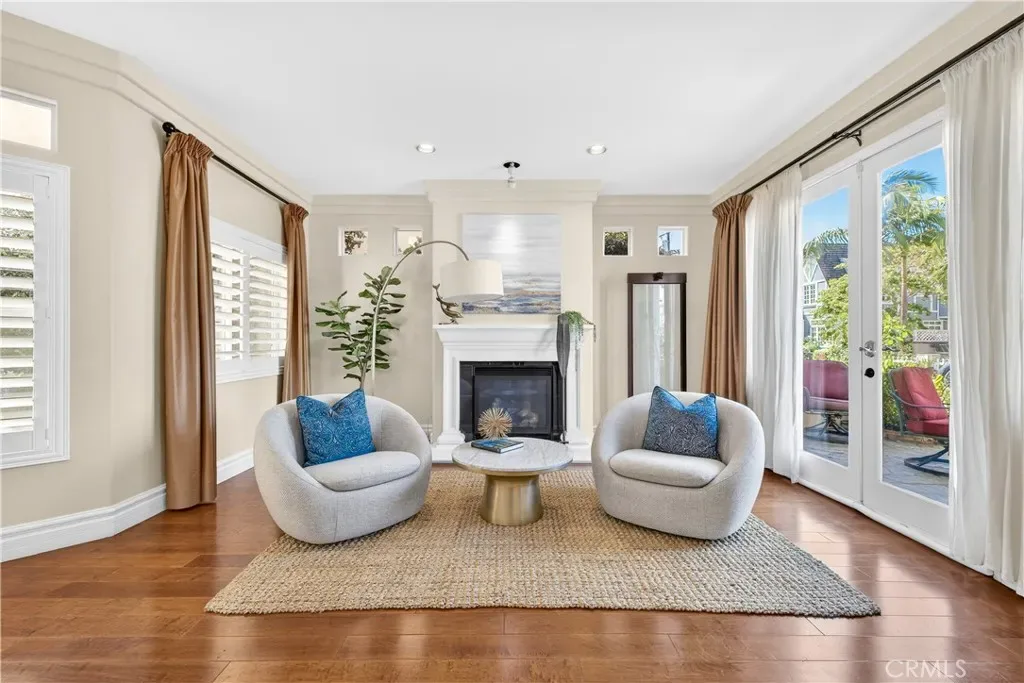 Located on picturesque Naples Island just steps from the canal, this Mediterranean-style home blends coastal charm with a highly functional layout. Built in 1998, the residence offers 3 bedrooms, 2.5 baths, plus a spacious upstairs loft ideal for a secondary living area, office, or media space. The main level features a fantastic entertaining floor plan with high ceilings, warm wood flooring throughout, and seamless flow between living spaces. The inviting living room includes a fireplace and French doors that open to the front patio, while the expansive kitchen opens directly to the family room—creating a natural gathering space at the heart of the home. A private courtyard patio offers a quiet outdoor retreat, ideal for relaxing or entertaining. Upstairs, the secondary bedrooms are generously sized with large closets and share a full hall bath, along with a convenient upstairs laundry room. The primary suite offers a private balcony, walk-in closet, and a beautiful spa-like bath with dual sinks and a separate vanity. Ideally located near the canals, Alamitos Bay, and the Long Beach Yacht Club, and within easy walking distance to trendy restaurants and shops, this home captures the essence of Naples Island living.