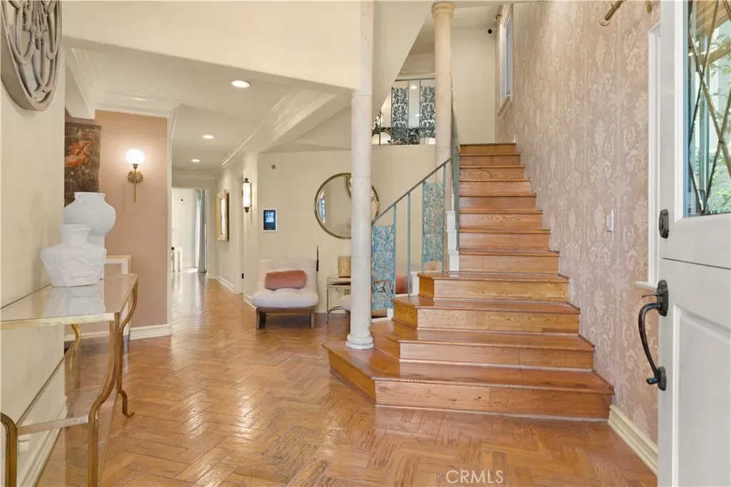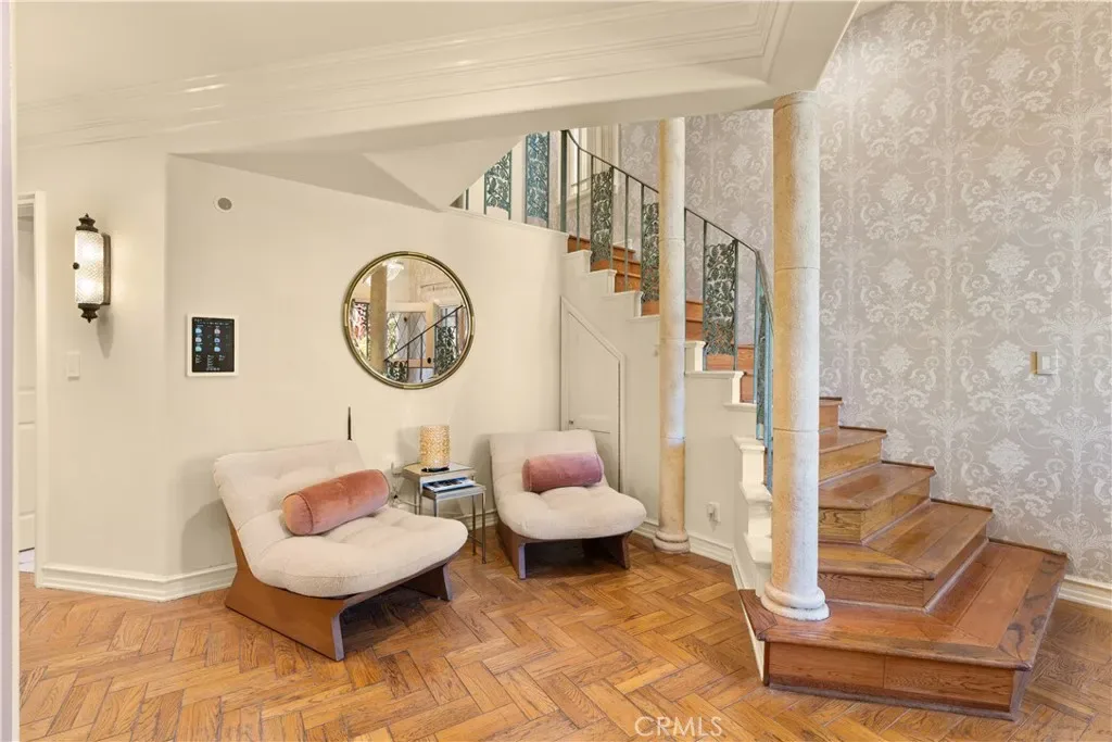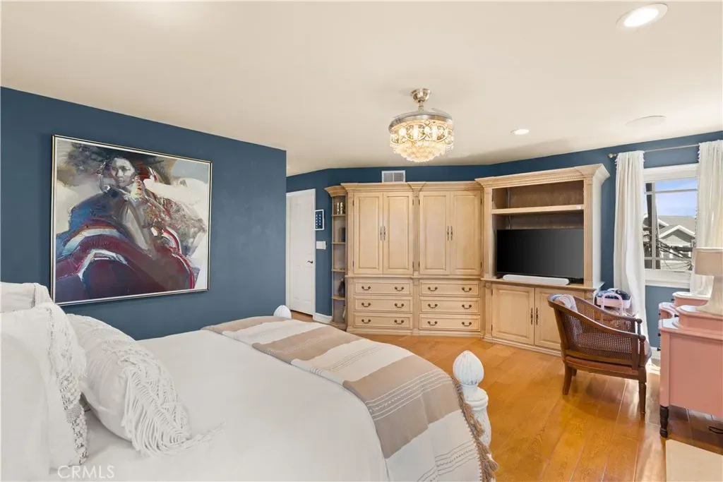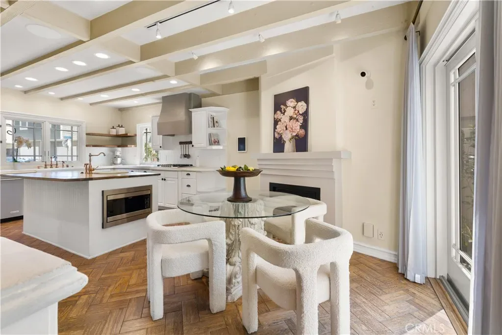Experience refined coastal living in this exquisite French Provincial tri-level home, ideally positioned in exclusive Naples Island of Long Beach. Just steps from the scenic waterways and moments from world-class dining, this beautifully appointed residence offers timeless elegance with flexible furnishing options to suit your lifestyle. The first level welcomes you with a grand entry that opens to a formal living room featuring soaring vaulted ceilings, a fireplace, and a wet bar, perfect for entertaining your guests. The formal dining room showcases a stunning coffered ceiling with decorative floral inlays, and a stunning chandelier adding a touch of sophistication. A spacious eat-in kitchen anchors the rear of the home, complete with a large center island and prep sink, full suite of appliances, and direct access to a private patio with built-in BBQ, ideal for alfresco dining. A guest powder room, indoor laundry, and direct-access two-car garage complete this level. The second level offers three bedrooms and a large family/media room with its own wet bar and wine refrigerator. One of the bedrooms features an en suite bath, while another versatile space toward the rear adapts beautifully as a private bedroom, executive home office, or personal fitness studio, perfect for today’s flexible lifestyle. A second full bath serves the remaining rooms. Ascending to the third level, you’ll find the primary suite, a serene retreat featuring a fireplace, walk-in closet, and a newly remodeled spa-inspired bath with floor-to-ceiling tile, a floating vanity, modern fixtures, and an expansive dual-head walk-in shower. The entire suite is designed for privacy and comfort, separated from the rest of the home. A few steps above the primary suite leads to the rooftop deck, an entertainer’s dream with panoramic 360º views of Naples Island, comfortable patio seating, and a gas fire pit that is perfect for sunset gatherings or evening relaxation. This exceptional home combines timeless European charm with modern amenities, all within Naples Island’s coveted waterfront enclave, one of Southern California’s most distinguished residential communities.