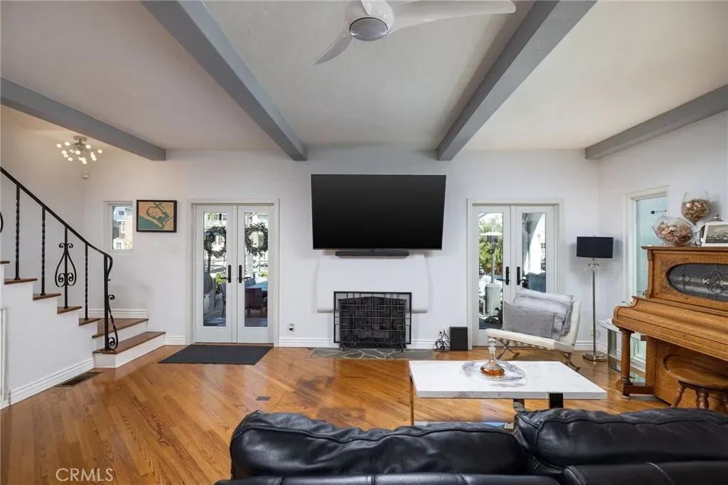 Built in 1932 and expanded to 2,600 square feet on a 2,470 square foot lot, this beachside cottage blends timeless coastal charm with meticulous modern upgrades, creating a turnkey haven for relaxed living and entertaining. Preserved classic details include gleaming hardwood floors, exposed beams, curved moldings, and custom built-ins. The remodeled kitchen features bright white cabinetry and high-end chef’s appliances, flowing to an inviting dining room. A spacious family room opens directly to the waterfront deck with tranquil canal views. The layout features 3 bedrooms (expandable to 4, including an option to add a downstairs suite), 3 full baths, versatile bonus room with fireplace, living room fireplace. Suited for families, remote workers, or guests. Laundry in common area and master closet; built-in organizers in all bedrooms. Major upgrades focus on efficiency and comfort: high-performance Andersen windows and doors for natural light and energy savings; 8.4 kW solar system with two Tesla Powerwalls; new metal roof with white reflective energy-saving coating; state-of-the-art Lennox air and heat system; fresh insulation in master suite and bath; new ceiling fans and updated light fixtures throughout; fully refreshed electrical system; Ring security system (indoor/outdoor monitoring); Velux automated skylight for adjustable daylight. Sustainability and convenience combine with the upgraded tankless water heater system complete with instant hot water recirculation; whole-house water softener and advanced filtration; along with new faucets, door handles, and laundry organizers. The front patio was expanded with the removal of several planters and trees, and a retractable awning was installed over the front patio for additional shade in the breezy summer afternoons. A refreshed two-car garage with a new door and expansive built-in storage racks increased functionality. Additional highlights include a private 30-foot boat dock steps from the expansive waterfront lanai and deck. This upgraded canal-front home at 90 Rivo Alto Canal delivers premium Long Beach waterfront living.