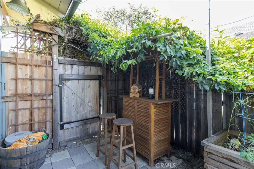 The low-maintenance backyard has raised planters, a wooden bar, a concrete patio, and a storage shed. There is a large 1 car garage that was rebuilt with plenty of storage, and a small driveway in front of it. The front side yard has beautiful roses and 2 fig trees. This is your chance to own a piece of history near Retro Row!