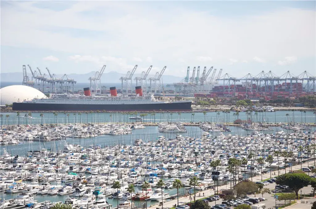 WHERE ELEVATION DEFINES DISTINCTION. This fully remodeled penthouse is absolutely stunning, with every detail thoughtfully designed for effortless coastal living. The chef’s kitchen has been completely transformed, down to the last detail, featuring custom cabinetry, granite countertops, and professional grade stainless steel appliances, perfect for entertaining or everyday living. The bathrooms are spa inspired retreats, each meticulously designed to combine luxury and tranquility. Rich wood floors, an open concept layout, and walls of glass frame breathtaking views of the Pacific Ocean, Rainbow Harbor, and the Queen Mary. Every element of this 2 bedroom, 2 bath, 1,587 square foot home has been carefully curated, making it completely move in ready. Here, the elegance and comfort of a large, luxurious home are captured in a sophisticated, low maintenance lifestyle, plus the vibrant energy of the Pacific High Rise is right below your feet. Enjoy premier dining, exclusive clubs, and social experiences just steps from your door. Two dedicated parking spaces, on site storage, and access to concierge services, a guest suite, and resort style amenities complete this rare coastal lifestyle. Turnkey, elevated, and undeniably exceptional, this penthouse is where elegance meets the Pacific.