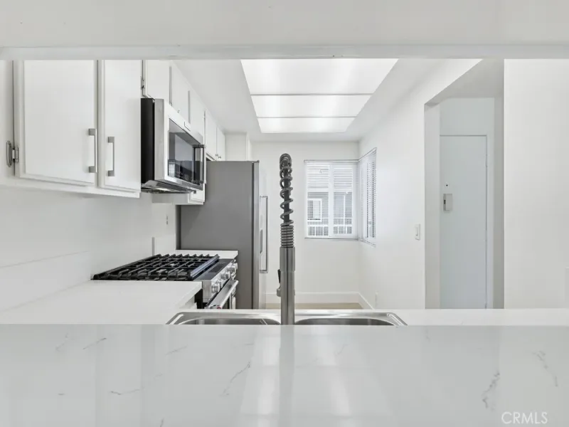 Just blocks from the beach, this beautifully remodeled top-floor unit offers a perfect blend of comfort and style. Residents enjoy the benefit of being within walking distance to the shoreline, making it ideal for those who appreciate coastal living. The unit boasts vaulted ceilings that create an airy, spacious atmosphere. Gleaming hardwood floors run throughout the home, providing a sophisticated touch. A cozy fireplace adds warmth and character to the living area, making it an inviting place to relax. Dual-paned vinyl windows allow for an abundance of natural light, enhancing the bright and open feel of the space. The newly refreshed kitchen is designed for both functionality and style. It features elegant quartz countertops, refinished cabinetry, and high-quality stainless-steel appliances, catering to the needs of any home chef. Each of the spacious bedrooms is complemented by its own well-appointed bathroom. Skylights in the bathrooms fill the rooms with natural light, creating a bright and cheerful environment. Step out onto the private patio to enjoy stunning views, offering a tranquil retreat right at home. This lovely complex is situated in the desirable Alamitos Beach neighborhood and boasts an impressive walk score of 95, highlighting its convenience and accessibility. Common areas include a beautiful pool, an outdoor cooking area, spacious patio, and a club and fitness room, providing residents with a variety of options for recreation and relaxation. Elevator access to all floors from garage and lobby.