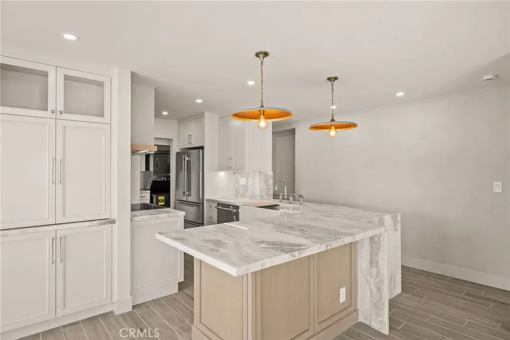 This beautifully upgraded waterfront condo on the iconic Peninsula in Long Beach offers refined coastal living with a spacious and thoughtfully designed layout. The 2-bedroom, 2-bath residence features stylish upgrades and custom detailing throughout, including custom cabinetry, elegant marble countertops, and a quartzite countertop in the primary suite. Designer lime wash paint accents add warmth and character, creating a sophisticated yet relaxed coastal aesthetic. The home also includes in-unit laundry for modern convenience.