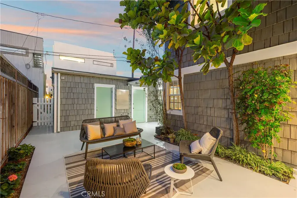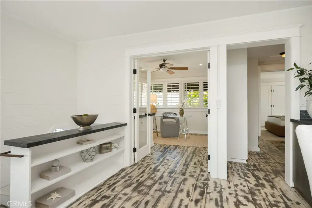 A private courtyard welcomes you and immediately sets the tone for the home’s relaxed indoor-outdoor lifestyle. Enter through classic Dutch doors and you’re greeted by beautifully hand-painted floors that showcase the home’s character and craftsmanship. The lower level is designed for easy entertaining, featuring a spacious family room with a wet bar thoughtfully added to complement the courtyard—perfect for hosting family and friends, or unwinding after a day at the beach.