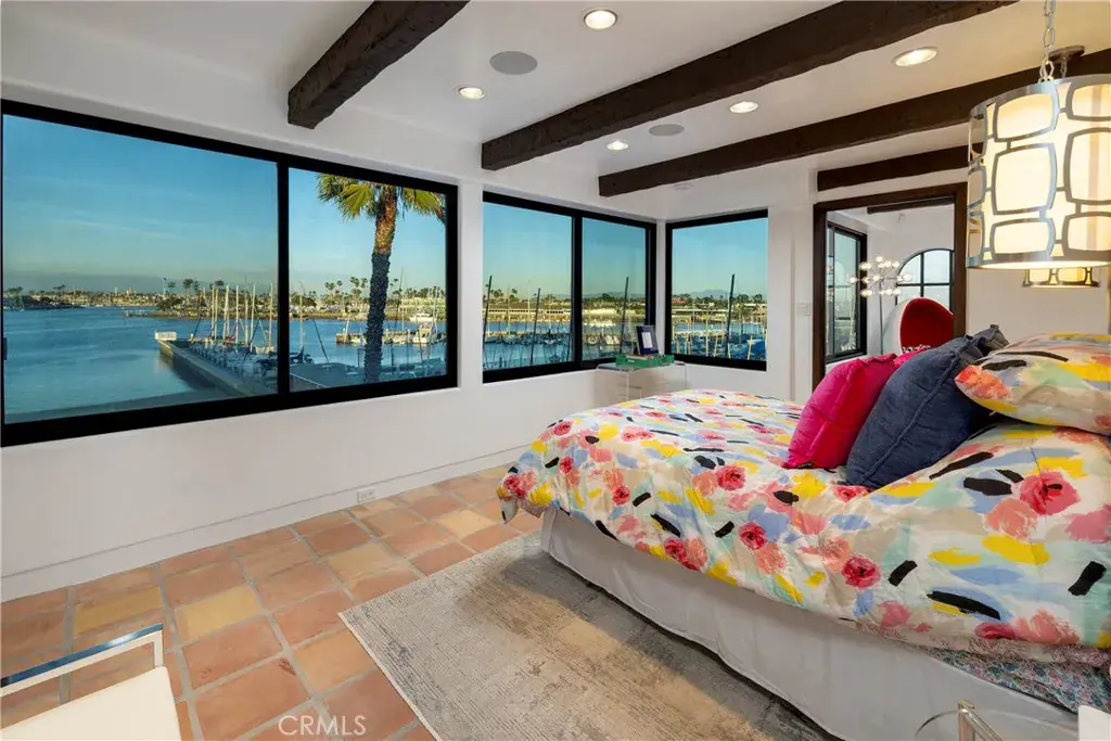 Inside, the open-concept kitchen and living space frame sweeping bay views, while the top-floor primary suite with a sitting area, picture windows, and walk-in closet feels like a private tower retreat overlooking the water. Two additional bedrooms, three and a half baths, and a flowing layout makes the home as livable as it is impressive.