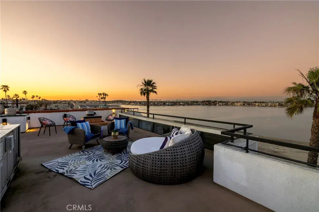 The rooftop patio serves as the crown of this coastal castle, delivering 360-degree views that have to be seen to be believed. Below, a three-car garage with a rare rear door opens directly to the sand, perfect for launching paddle boards or boats straight into the bay. A beach-level bathroom and laundry round out the thoughtful design.