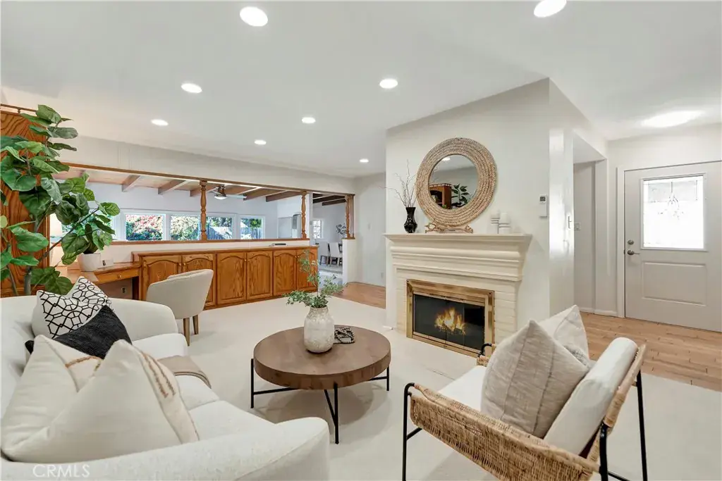Welcome to the best of East Long Beach living! Tucked in a coveted El Dorado Plaza neighborhood, this beautifully updated home blends sophistication with California ease on a Jacaranda tree-lined street. This property features an expanded floor plan with the addition of a formal dining room and a den with exposed wood beam ceilings, and a “wall of glass” with sliding doors to the backyard. The oak hardwood floors are newly refinished, and there is new carpet in the living room and den. The living room features a wood burning fireplace, new recessed lights, and a built in oak desk, bookcase, and lots of cabinetry storage. The kitchen has white cabinetry, tile counters, recessed lights, and stainless steel appliances that stay with the property. There is plenty of storage, and the laundry is located in the kitchen. The first bedroom is connected to the first bathroom. All bedrooms have refinished floors and sizeable closets. Both bathrooms are fully remodeled with premium materials and thoughtful design. The backyard has a wooden deck, lawn and a lovely orange tree. There is a 2 car detached garage with long driveway. Other upgrades include a fully paid solar system and an EV charging station. A newer roof, dual pane windows and sliders, newer interior and exterior paint, and updated insulation throughout. Split heating and cooling systems for custom temperature per room. Pull down attic ladder for additional attic storage. Walking distance to the best of El Dorado Park: duck pond, golf course, sports fields, library, and more!