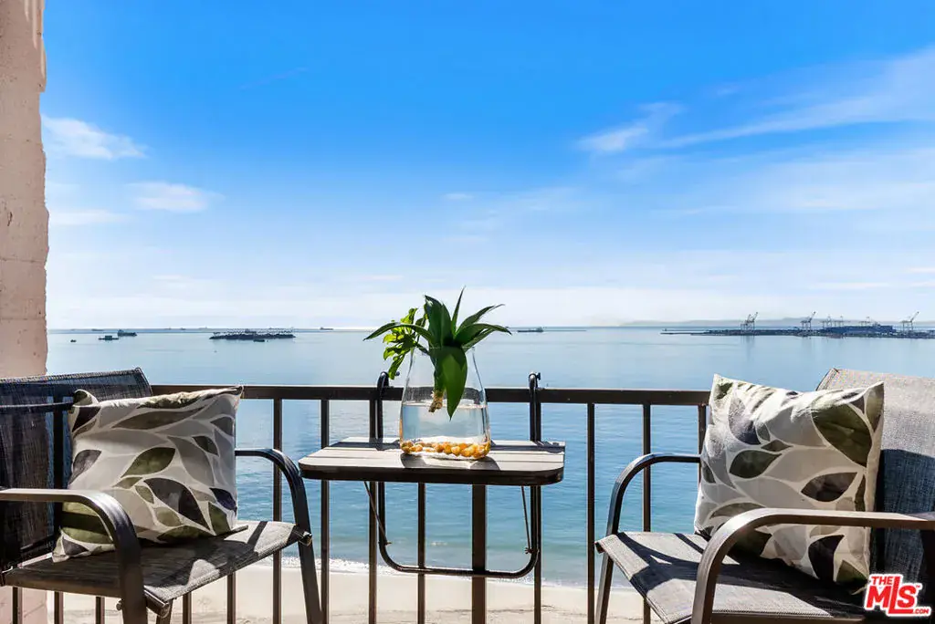 Experience modern beachfront living with unobstructed jetliner ocean views from this elevated, luxury residence. The open-concept floorplan is designed to draw your eye directly to the expansive coastline, creating a seamless connection between the interior space and the ocean beyond. Situated high above the shoreline, this home offers a peaceful retreat with constant ocean breezes and dynamic water views. The private oceanfront balcony provides an ideal setting to take in the light reflecting off the water and watch passing boats and ships. The interior has been fully remodeled to showcase a blend of modern design and premium finishes, including European-style cabinetry with built-ins, real stone countertops and stone flooring, stainless steel appliances such as a Fisher & Paykel double-drawer dishwasher and Bosch refrigerator, recessed lighting with dimmers, and air conditioning. The spa-inspired bathroom features a frameless glass shower with an in-ceiling rain showerhead and contemporary dual-sink glass countertop. In-unit laundry is also included. Positioned high within the building, the unit offers both ocean views from the main living space and city-light views inland from the bedroom. Residents of the sought-after Queen’s Surf building enjoy secured access, assigned parking, and a range of amenities in an exceptional beachfront location. Minutes from the Long Beach cruise terminals for Carnival and, beginning in 2026, Virgin Voyages and Royal Caribbean.