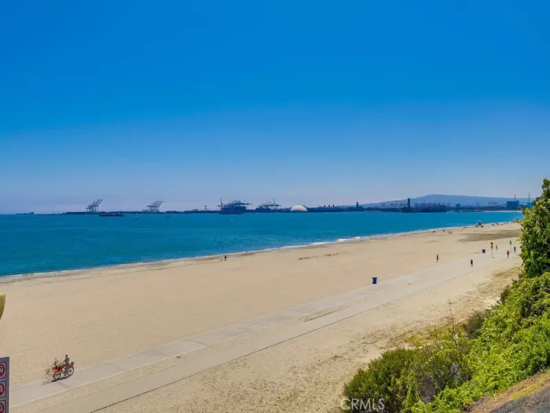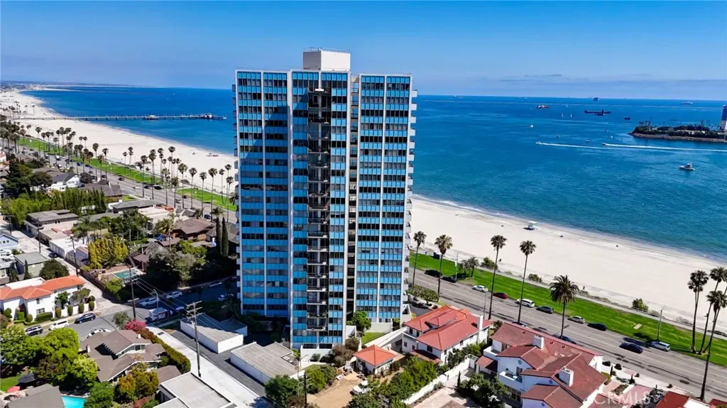Seller financing available-call for terms! Open concept first floor, 1-level home boasts 1510 sf of living space & spares no expense! Enjoy panoramic ocean, Catalina Island & coastline views from every room of this turnkey highly desirable Bluff Park residence where modern living meets luxury & tranquility! Mid-century modern Ocean Front 2 bedroom, 2 bathroom home is located at the iconic Galaxy Towers designed by Hugh & Don Gibbs. Home is newly remodeled & has everything you could dream of – it’s steps away from the Pacific Ocean, offers 3 private patios/courtyards adding 800 sf of outdoor living space to garden, let pets run, meditate, lounge, BBQ & entertain! Spacious living room offers sleek hardwood floors, ceiling-to-floor massive glass windows capturing ocean views & ocean breezes, sliding glass door access to multiple patios & natural light. Stunning chef’s kitchen features ocean views & jaw-dropping design featuring induction-electric cooktop, vibrant blue double oven, custom teak wood-toned cabinetry, kitchen island, countertop space & pantry! Home offers spacious bedrooms boasting ocean views, 3 private courtyard/patios & hardwood flooring. Primary bedroom has ocean views while laying in bed from many angles. 1 bathroom features walk-in shower; the other bathroom has a tub/shower combo. Laundry w/washer & dryer conveniently located inside home in cabinets. Gated, subterranean garage parking spot comes w/this unique home! Additional garage parking space available & sold separately for $60,000. The Galaxy is a historically renowned architectural gem with only 4 units per floor & no common interior walls. Galaxy Towers has many amenities including pet friendly, outdoor picnic/BBQ area, elevators, mailroom, on-site manager, new roof, secured access & parking, courtyard, & unobstructed views of the ocean, Catalina Island & Palos Verdes hillside. HOA allows rentals! HOA dues include water, trash, common area maintenance, on-site management, security features & insurance. Home located centrally in an upscale neighborhood within walking distance to coastal adventures, the pier, magnificent restaurants, shopping, museums, Downtown Long Beach, Belmont Shores, Queen Mary, Bluff Park, entertainment & close to freeways. Don’t miss this opportunity to make this your coastal retreat!