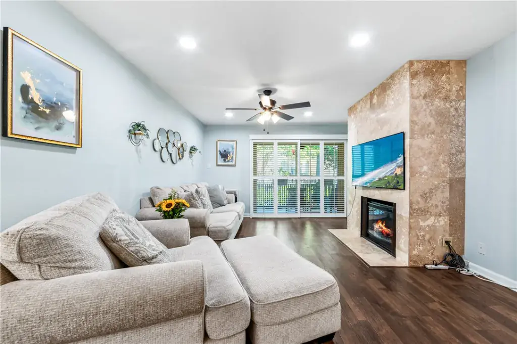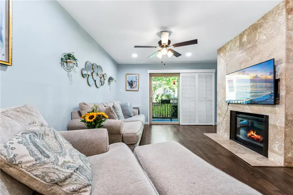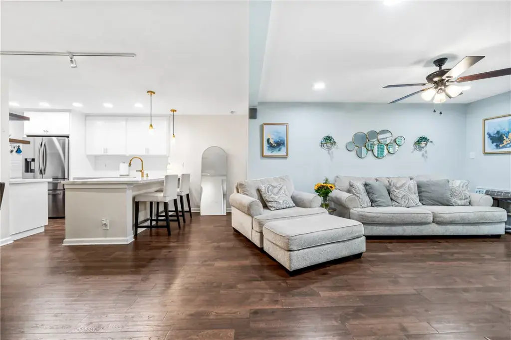 Step into comfort and serenity with this highly sought-after 3-bedroom, 2-bathroom condo located in the peaceful, gated community of El Dorado Lakes. Tucked away in a tranquil enclave surrounded by lush landscaping and scenic lake views, this beautifully maintained home offers the perfect blend of modern updates and resort-style living. Inside, you’ll find a spacious and light-filled layout featuring new luxury vinyl plank flooring throughout. The inviting living room boasts a cozy tiled fireplace, plantation shutters, and sliding glass doors that lead to a large private patio—ideal for relaxing or entertaining with views of the manicured grounds. The remodeled kitchen is a chef’s delight, showcasing sleek quartz countertops, crisp white cabinetry, stylish gold hardware, eye-catching pendant lighting over the breakfast bar, and stainless-steel appliances including a full-size dishwasher and built-in microwave. The adjacent dining area is perfect for gatherings, complete with elegant built-in mirrored china cabinets offering both style and storage. Retreat to the primary suite featuring a walk-in closet, additional linen storage, and a private en-suite bath. The second bedroom includes a mirrored closet, while the third bedroom is flooded with natural light and enjoys private patio access with peaceful greenbelt views. A built-in A/C wall unit ensures year-round comfort. Enjoy the convenience of a 2-car attached garage with direct access plus an additional assigned parking spot nearby. Resort-style amenities include 2 swimming pools and 2 spas, 2 tennis courts, Gated entry with controlled access, clubhouse with exercise room, sauna, library, billiards and ping pong tables, and outdoor deck with pretty lake views. Unbeatable location! Walk to El Dorado Park, nature center, dog park, and golf course, or hop on the nearby bike trail to the beach. Conveniently close to shopping, dining and easy access to 605 & 405 freeways.