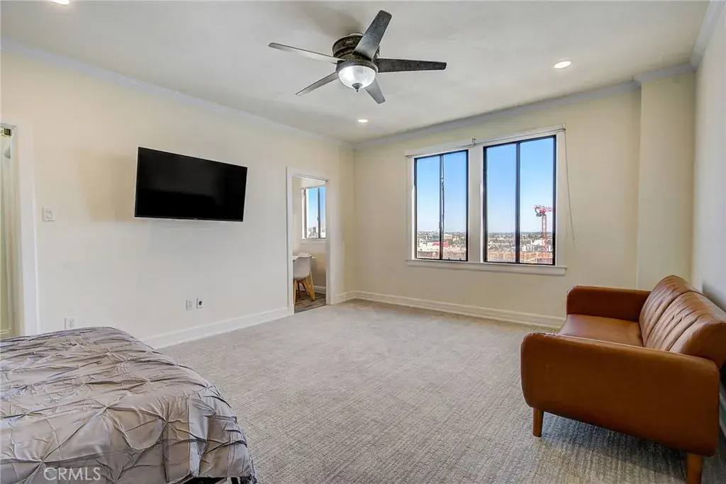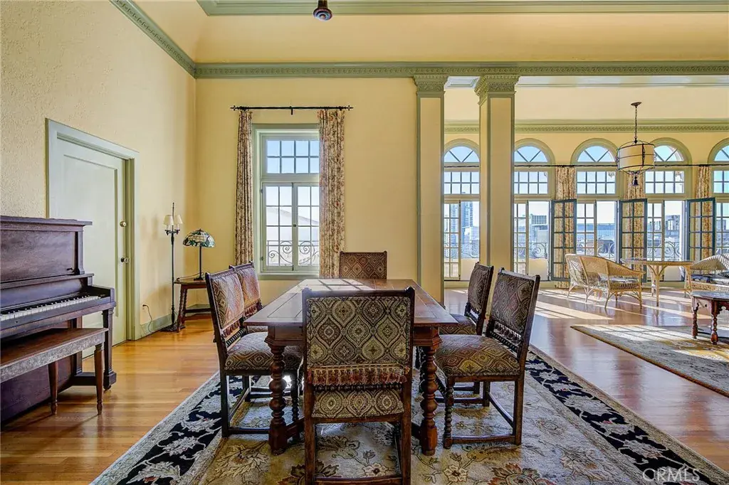 Welcome to sophistication elevated to new heights! This 10th-floor condo offers a captivating panorama of the Los Angeles Port and the shimmering waters beyond, all against the backdrop of city lights and iconic landmarks. Step into a residence inspired by the European Renaissance Revival, where architectural mastery meets modern luxury. Unique features, including a meticulously preserved solarium, provide a glimpse into a bygone era while offering breathtaking views of city high-rises. Extend your experience beyond the walls with a rooftop offering 360-degree panoramic views—a private retreat for moments of serenity or lively gatherings. Elegance Meets Practicality! Fully furnished with a queen Murphy bed, a chic sleeping sofa, and a stylish dining table, this unit seamlessly blends sophistication with practicality. The thoughtfully equipped kitchen, adorned with silverware and a sleek coffee machine, combines form and function, making daily rituals a delightful experience. Seize the opportunity to call this condo your urban oasis, where Renaissance Revival charm and modern allure converge. Immerse yourself in the sophistication of a bygone era while reveling in the convenience of contemporary living. Schedule your private viewing today and unlock the door to a lifestyle that transcends expectations.