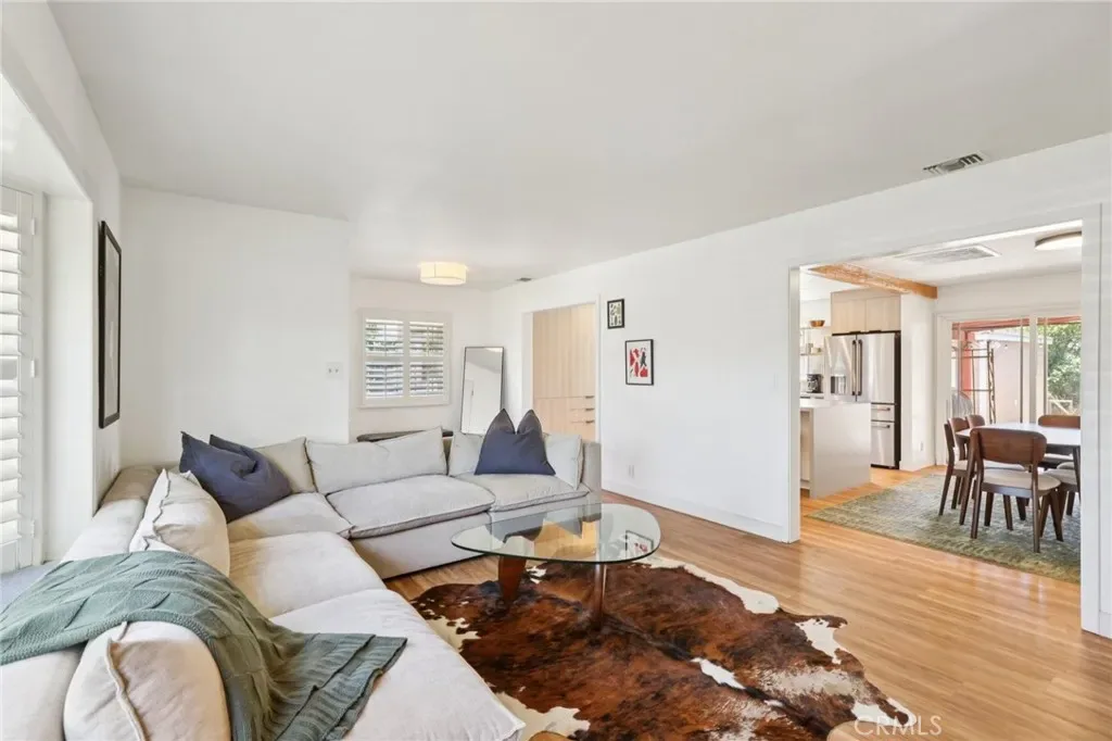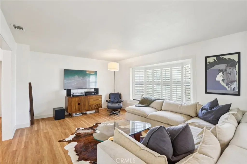 Located in the central heart of the coveted Wrigley Heights neighborhood, welcome home! This meticulously maintained and well upgraded home has been thoughtfully redesigned for comfortable and convenient living. Entering from a brick-accented entry and porch, the foyer and living room provide a spacious area for entertaining, natural light spilling through a charming bay window fitted, like most throughout the home, with custom plantation shutters. Rearward, a centerpiece to the home, is a top-notch chef’s kitchen. Fully remodeled, it boasts an expansive stone-topped island, copious amounts of cabinet storage solutions, high-end matching Thermador® appliances, and thoughtful open shelving to display one’s finest and interesting pieces of cook and dish ware. The open, airy plan continues to the adjacent dining room, fitted with a sideboard built to match the design of the kitchen, and equipped with a sliding door leading to the rear yard. For sleeping quarters, two bedrooms can be found at the front and middle of the home, while the primary suite is insulated from these first bedrooms with the hall bathroom between. All of these rooms are fitted with plenty of closet space, expanded from the original 1940’s design. The rear yard includes such features as a covered carport behind gates, a covered patio area, 2-car detached garage, and, perhaps most importantly, a green lawn shaded by a beautiful, mature and producing avocado tree. Home system upgrades include: energy-efficient heat pump system, tankless water heater, 200A electrical panel, and dual-pane windows throughout. Do not sit on this opportunity to become part of a wonderful community in a sleepy, lightly-trafficked pocket of Long Beach!