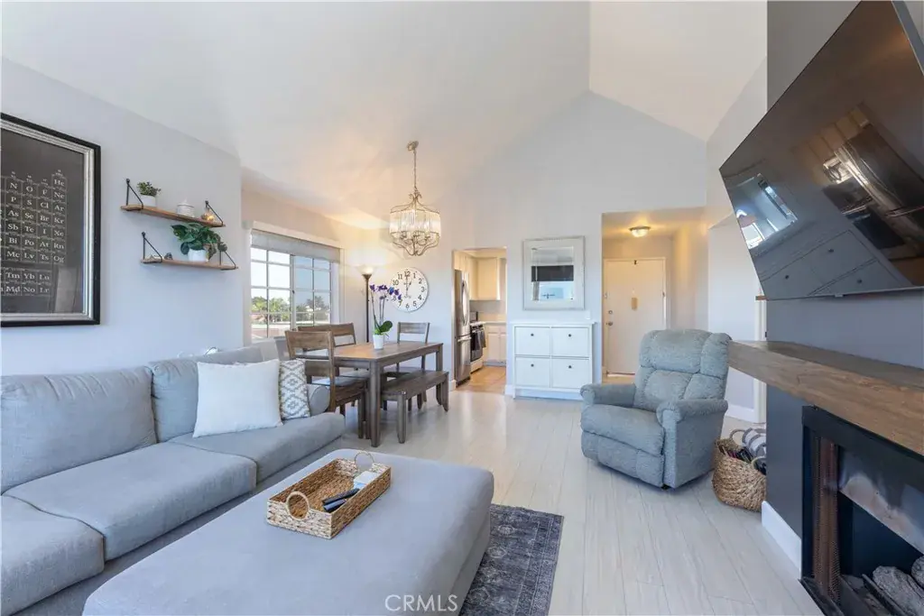Seller offering an incentive to pay the first 12 months of HOA dues! Come see this beautifully maintained 2-bedroom corner unit in highly desirable Los Alamitos, offering 915 sq. ft. of comfortable living space in one of the area’s top-rated school districts. Perfectly positioned on the top floor, this light-filled condo captures the essence of SoCal coastal living with an inviting layout, thoughtful updates, and a coveted corner location that ensures both privacy and serenity. Step inside to find vaulted ceilings and laminate wood flooring that enhance the spacious open-concept living and dining areas with wall-to-wall sliding glass door and windows that have been tinted to keep things cooler on warmer days with custom shades to let in light whenever you want. The cozy fireplace creates a warm focal point for relaxing evenings, while sliding glass doors open to a large private patio—perfect for taking in the Socal sunsets. The updated kitchen features modern solid surface counters, garden window, gas range, dishwasher, and easy access to the dining area. A nearby laundry closet with in-unit washer and dryer hookups adds extra functionality and ease and washer/dryer appliances are included. Both bedrooms are generously sized, with large closets and plenty of natural light. The primary suite includes a walk in closet w/ensuite vanity that connects to a full bath and toilet tastefully finished with neutral tones and updated fixtures; there is an additional separated vanity on the opposite side of that shower and toilet area that is accessible from the guest bedroom as well. Enjoy the comfort of central heating and air conditioning, ensuring year-round comfort, plus two assigned parking spaces in a secure subterranean garage with direct elevator access to your floor. This well-maintained Peppertree community is ideally located near parks, shopping, and dining, and offers easy access to freeways and the beaches of Seal Beach and Long Beach. Known for its small-town charm and excellent schools, Los Alamitos continues to be one of Orange County’s most sought-after communities for its unbeatable combination of lifestyle, location, and value. Whether you’re a first-time buyer, Military Veteran (This complex is VA Approved), investor, or looking to downsize without compromise, this home is a rare opportunity to own a top-floor gem in a prime Los Alamitos location—offering comfort, convenience, and undeniable charm.