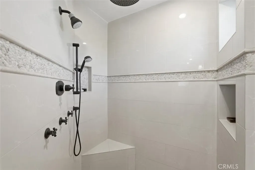 The backyard is a private resort style retreat with pool, spa, water feature, outdoor shower and a fully equipped entertaining area with sink and refrigerator drawers. A detached pool house with private entrance offers flexibility for a guest suite, office, or multigenerational living.