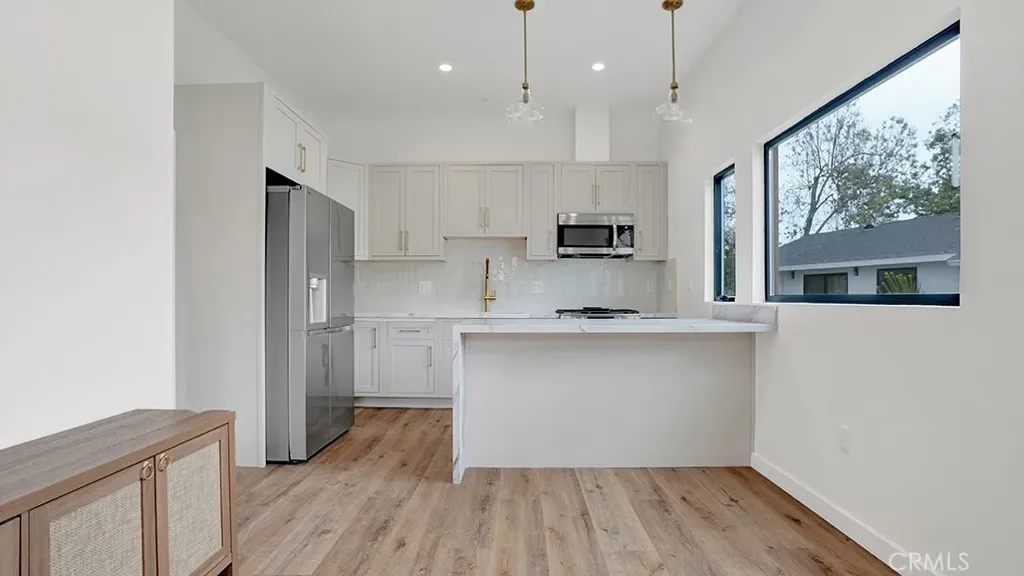 Beautiful Newly Built 1-Bedroom ADU in Los Alamitos. Welcome to this stunning new construction offering modern comfort and style. This private 1-bedroom, 1-bath home features luxury flooring throughout, recessed lighting, and thoughtful upgrades at every turn. The spacious kitchen is a chef’s delight with quartz countertops, stainless steel appliances—including a French door refrigerator, gas range, with air fryer, built-in microwave, and a charming semiprivate side yard. The inviting bedroom includes wood, blackout blinds. The beautifully designed spa like bathroom features large walk-in shower with rain shower head. Additional highlights include an attached laundry room and a private entrance from the side of the house. Street parking only. This rare lease opportunity includes gas, water, trash and gardening services. This unit combines privacy, comfort, and modern design—all in a desirable Los Alamitos location.